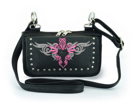 Biker Pink Embroidered Tribal Heart Hip Clip Leather Bag