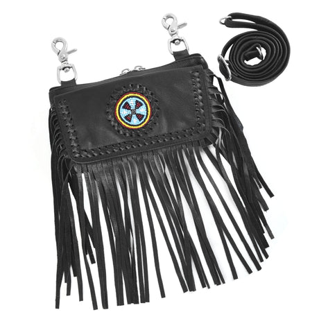 Biker Purple Tribal Heart Embroidered Hip Clip Leather Bag
