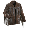 Men’s Genuine Suede Leather Western Cowboy Fringe Jacket – Beaded Native American Style