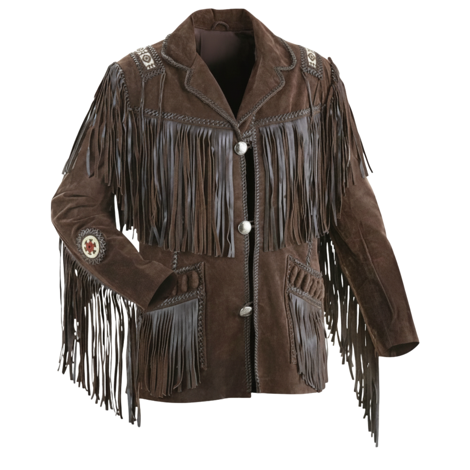 Men’s Genuine Suede Leather Western Cowboy Fringe Jacket – Beaded Native American Style - XS is backordered and will ship as soon as it is back in stock.