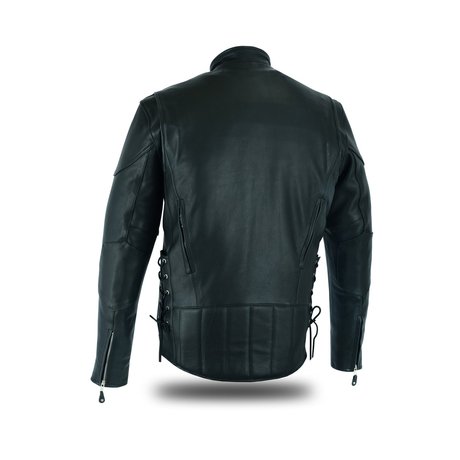 Don't want to settle for anything less than premium quality? This beautifully made, naked leather racer-style motorcycle jacket will be the most supple, thick jacket you've ever worn. And because it's made of the finest leather and hardware available, this motorcycle jacket can take all the punishment mother nature can dish out! The skins used on this jacket have not received any top coat finish or treatment. Leather garments that are made this way have an unusually soft, supple texture and feel.