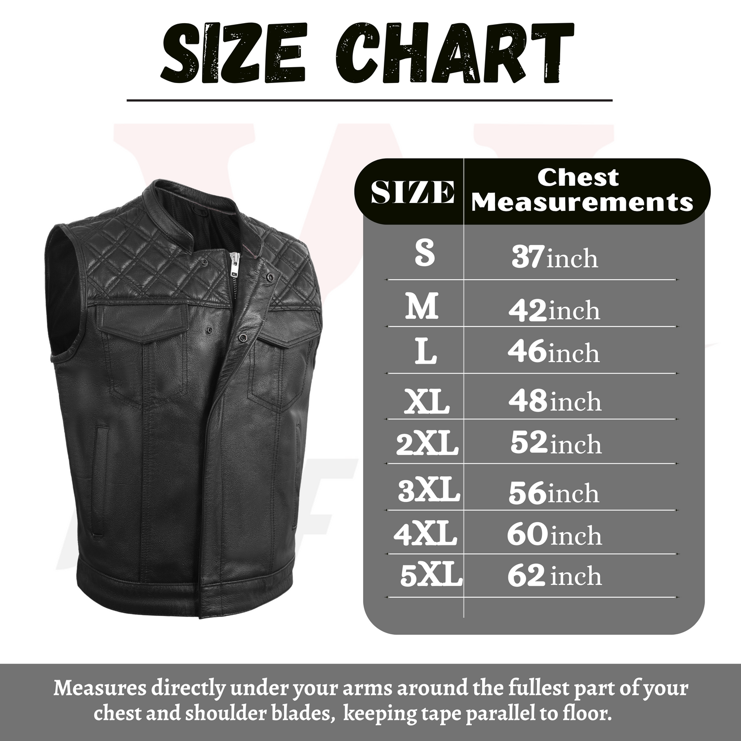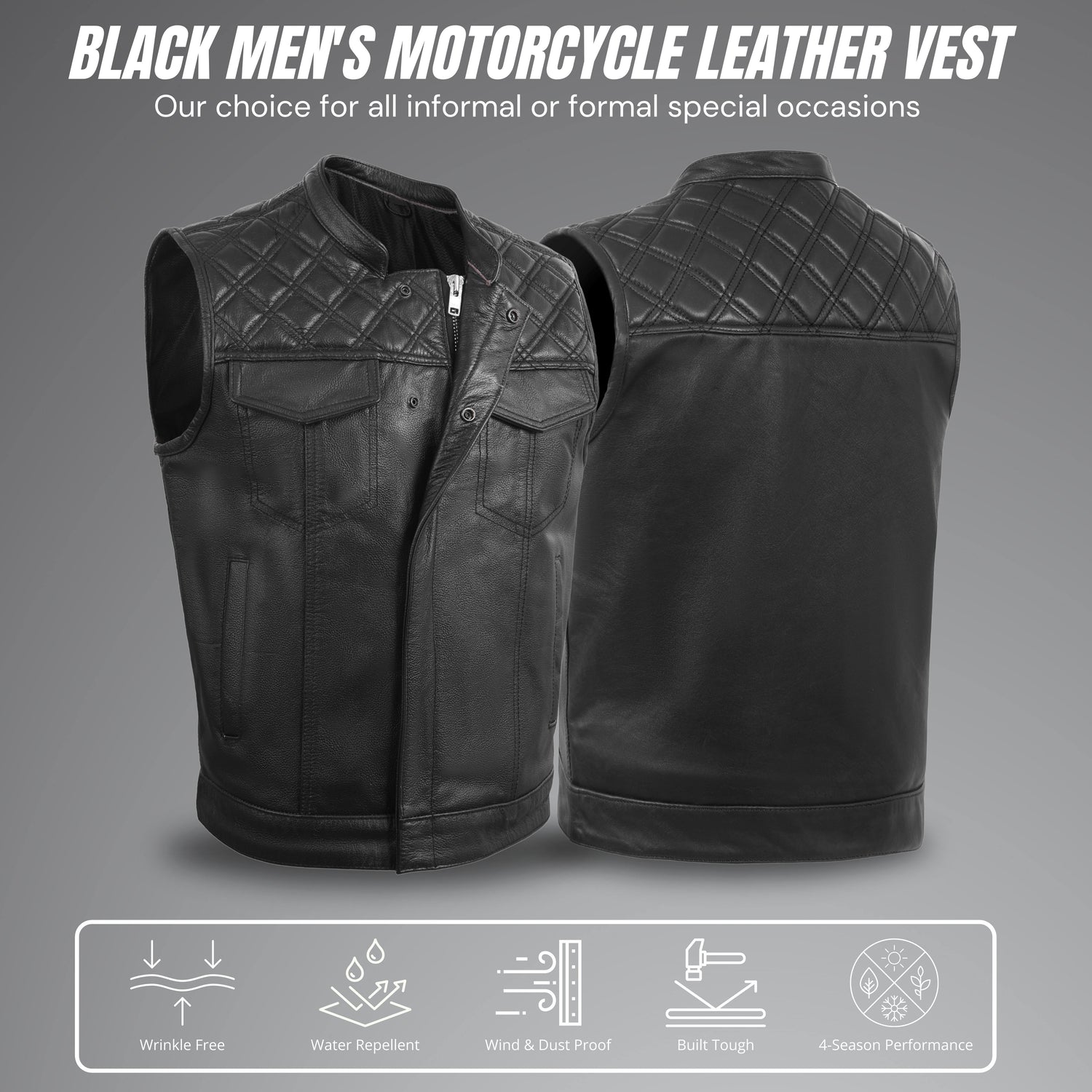 Men's Black Cross stitch Club Style Cow Platted Milled Leather Vest.
