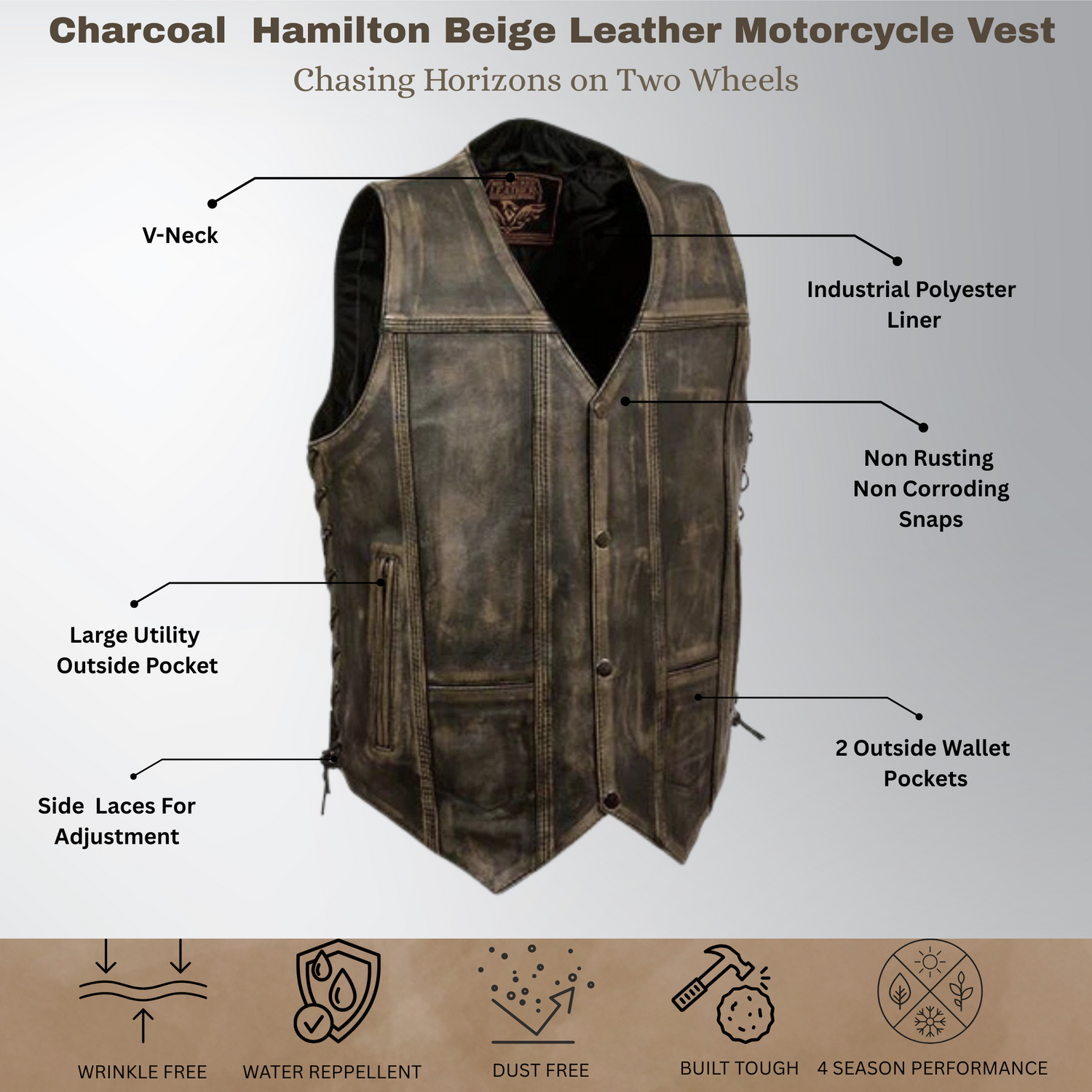Men's Roulette Distressed Brown 7 Pocket Motorcycle Leather Vest