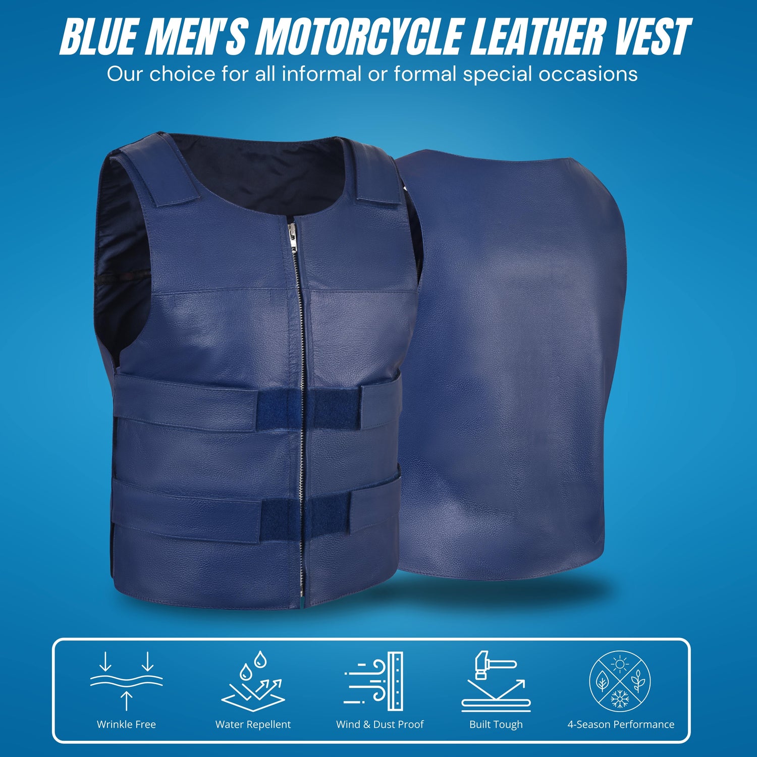 MEN BULLET PROOF STYLE BLUE LEATHER VEST