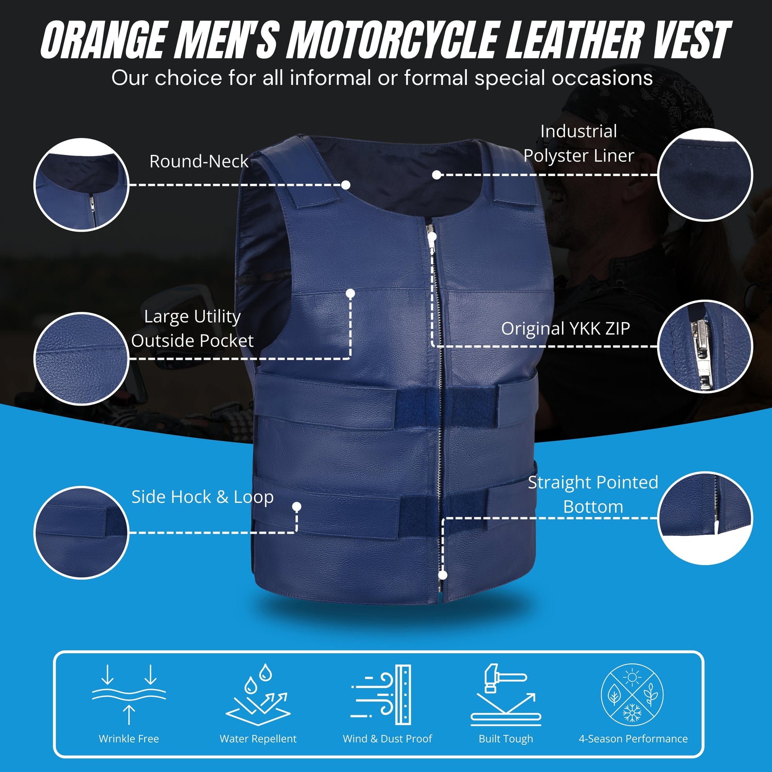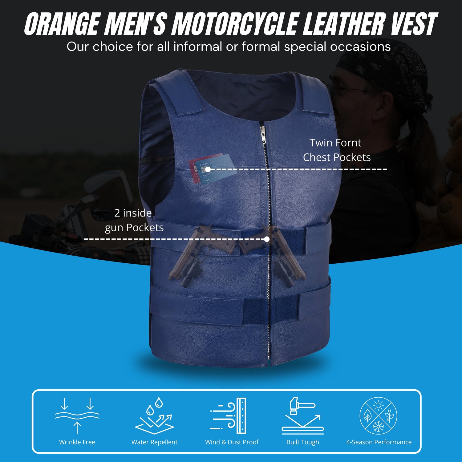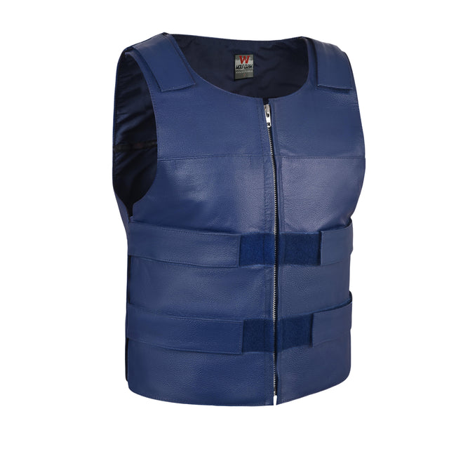 WCMV34611NAVYBLUE | Angel of Steel - MEN BULLET PROOF STYLE BLUE LEATHER VEST