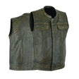 WCMV98611-BIEGE BROWN | Leather Siren - Men's Club Style Motorcycle BEIGE BROWN Leather Vest