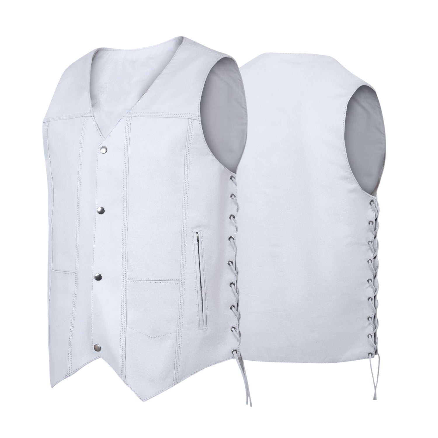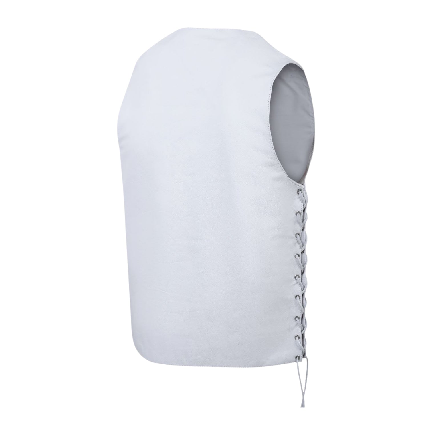 Men's Genuine White Leather 7 Pockets Motorcycle Biker Vest ANARCHY White SOA