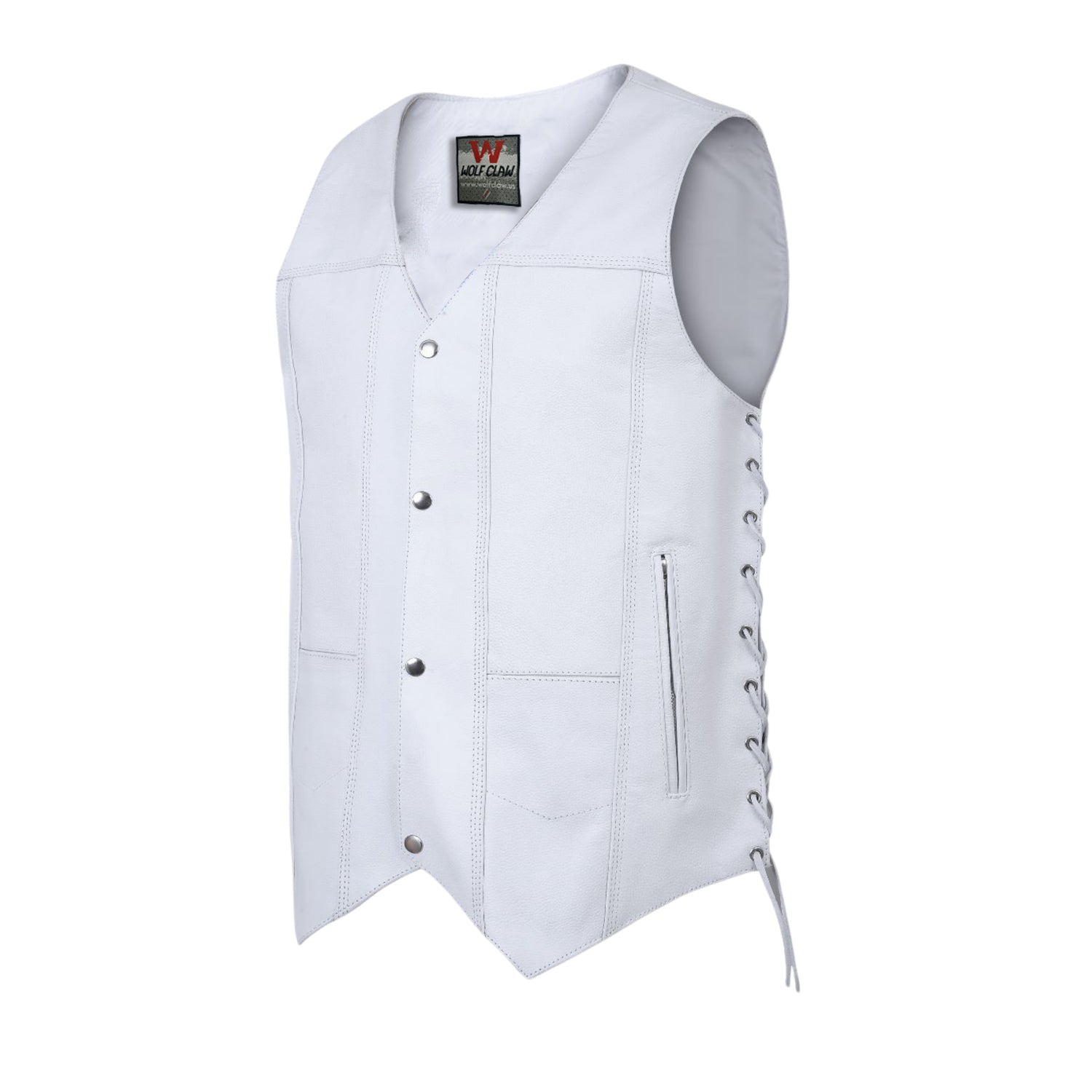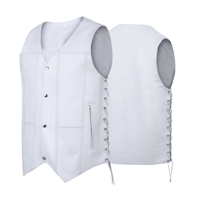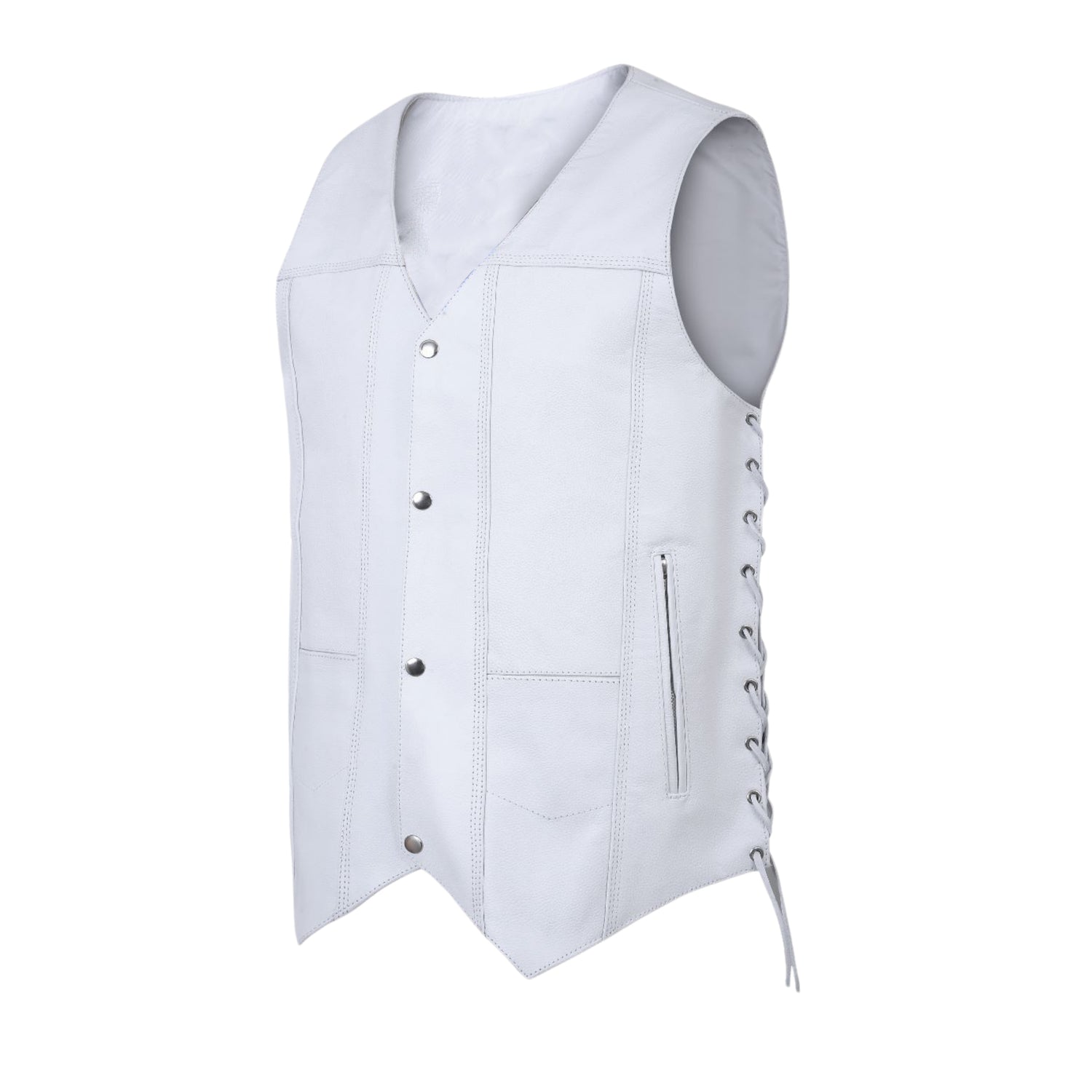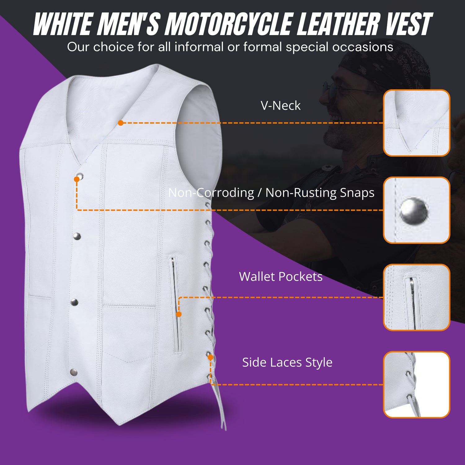 WCMV045311WHITE | Highway King - MEN WHITE LEATHER BIKER VEST
