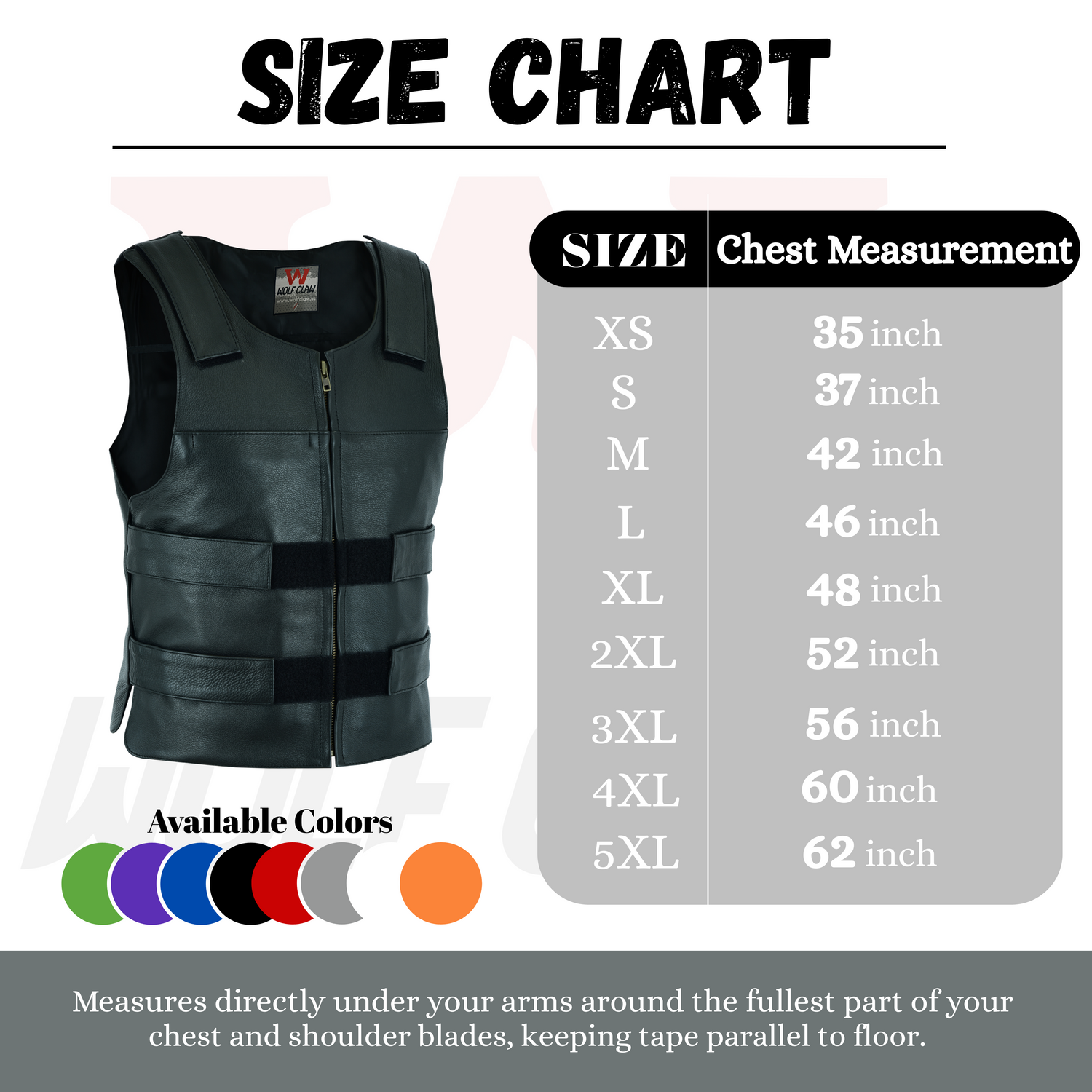 BLACK Men Bullet Proof style Leather Motorcycle Vest for bikers Club Tactical Vest