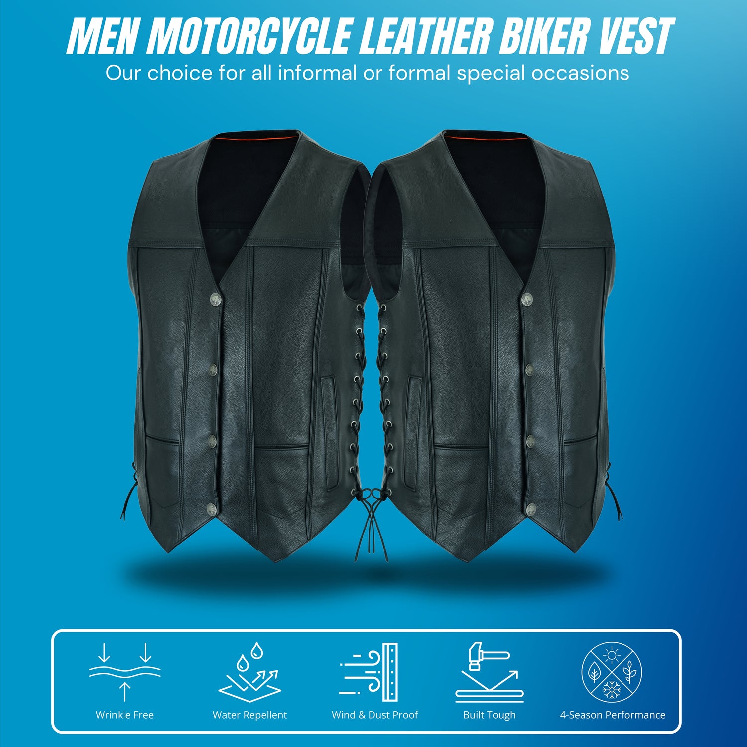 Men Motorcycle Covington Gun Pocket, Side Lace Leather Vest