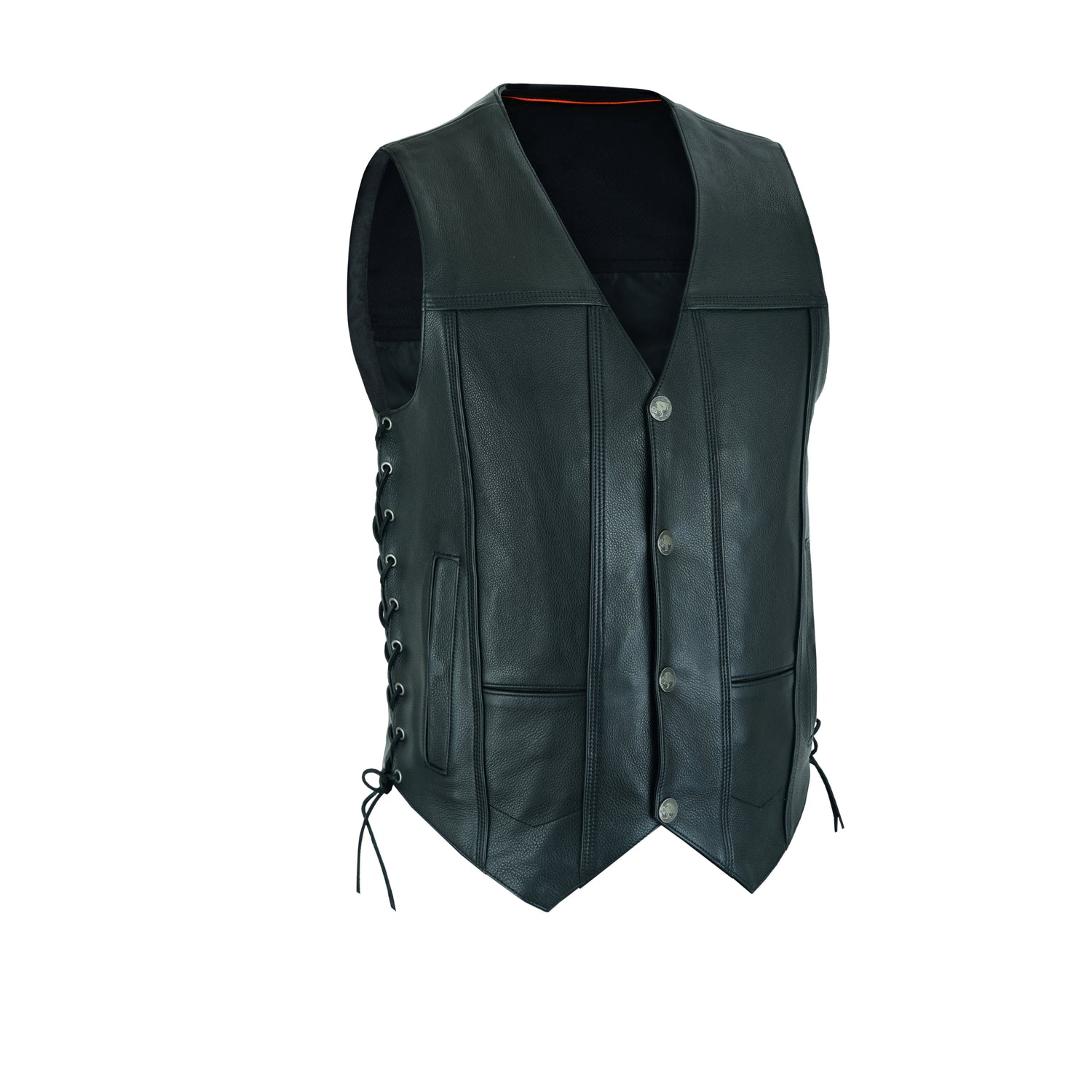 WCMV81011NKDBLACK | Daytona Drifter - Men Motorcycle Covington Gun Pocket, Side Lace Leather Vest