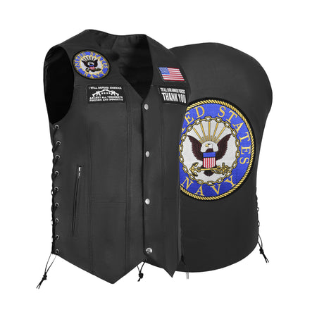 Navy Black Men's Genuine 7 Pocket Motorcycle Biker Leather Vest