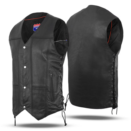 WCMV0453SPT Black Men Genuine Leather 10 Pockets Motorcycle Biker Vest ANARCHY Black SOA