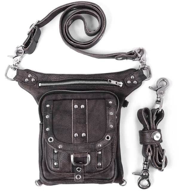 Distressed Brown Drop Leg Fanny Waist Leather Bag