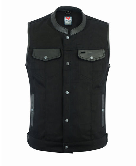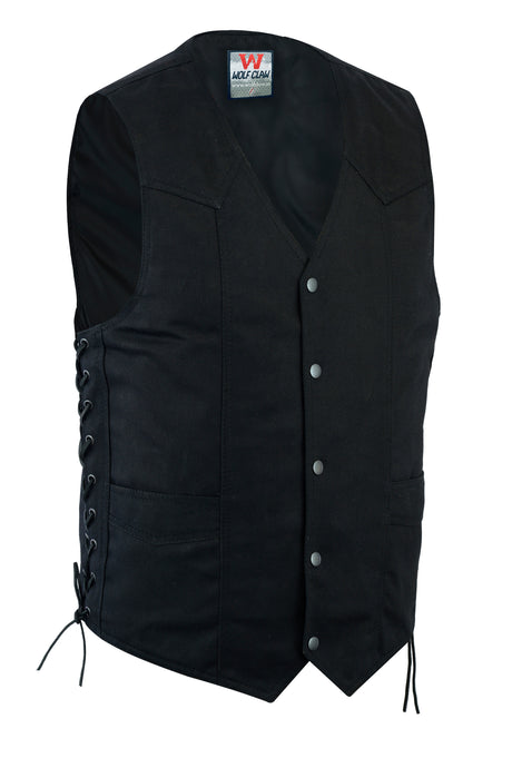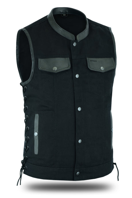 Men's Motorcycle Denim OUTLAW SOA Club Style Vest with Side Laces (WC58612BLACK)
