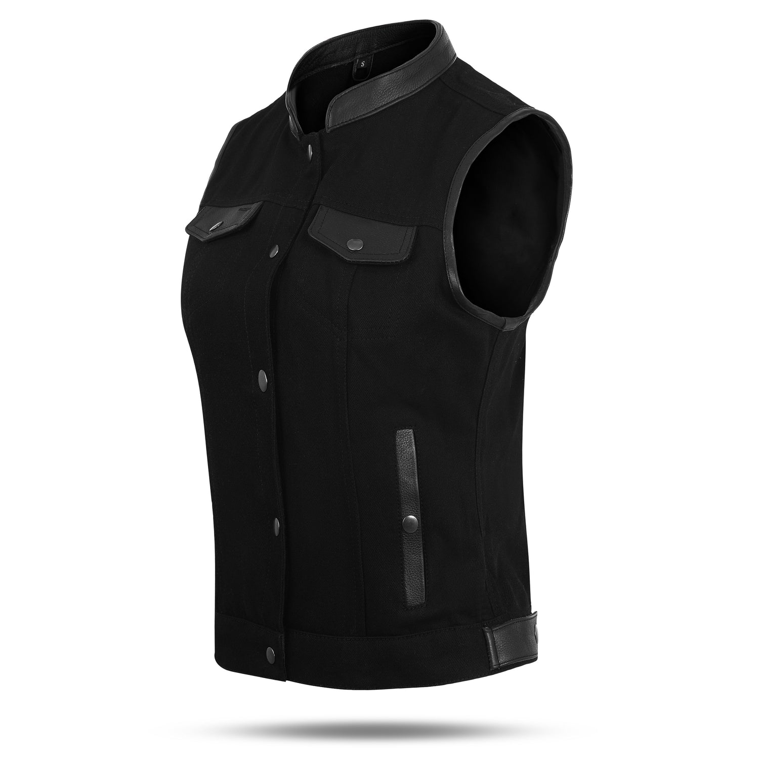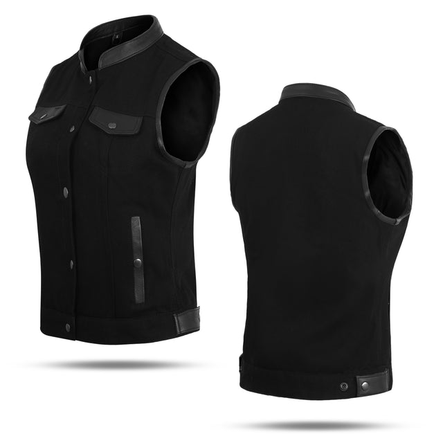 WCWV08512DM | Women's Black Denim Motorcycle Club Vest