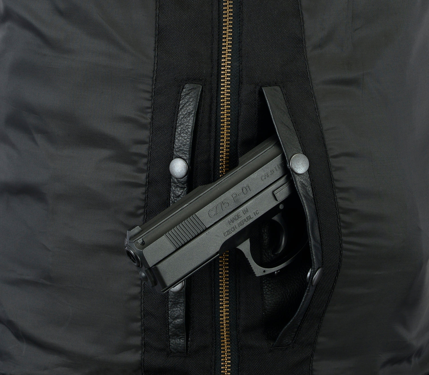 Two inside  Pockets with built-in holsters   and snap closure, Four outside pockets