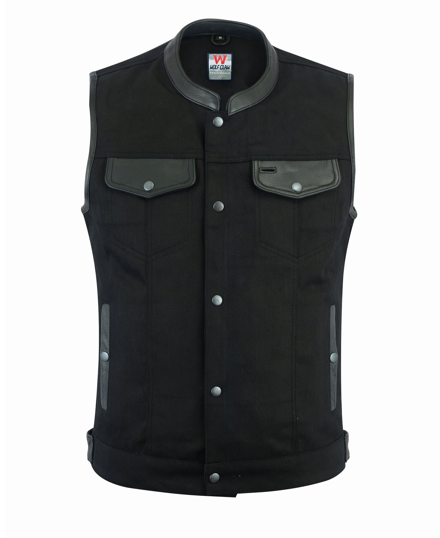 Biker Denim Club Style Anarchy BLACK Vest with Conceal Carry Pockets both sides