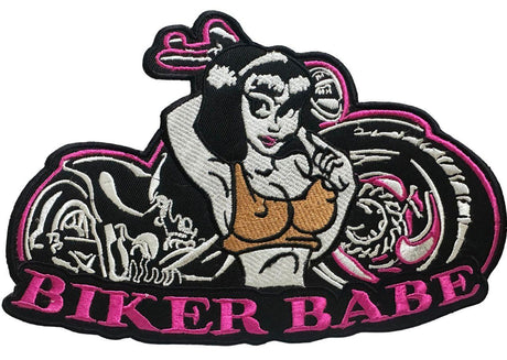 WCEP17 BIKER BABE PINK & WHITE DESIGNS MOTORCYCLE PATCH EMBROIDERY IRON ON PATCH