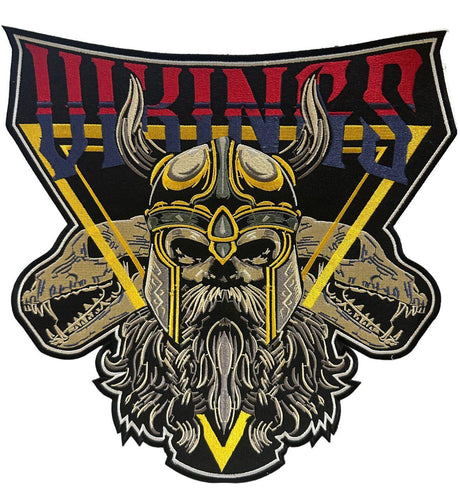 WCEP169 LARGE VIKING SKULL CROSS BATTLE AXES EMBROIDER IRON ON OR SEW ON PATCHES FOR BIKERS