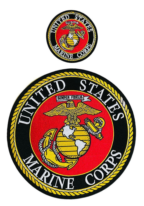 WCEP40 UNITED STATES MARINE ROUND 2 PC SET DESIGN MOTORCYCLE PATCH EMBROIDERY IRON ON PATCH