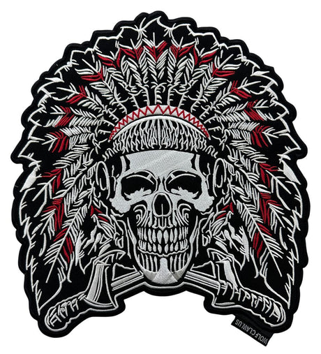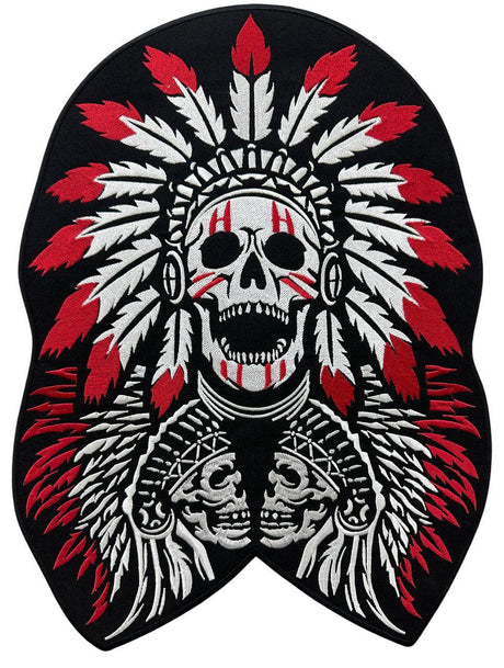 WCEP70 RED INDIAN SKULL ( RED+WHITE+BLACK+YELLOW ) DESIGN MOTORCYCLE PATCH EMBROIDERY IRON ON PATCH