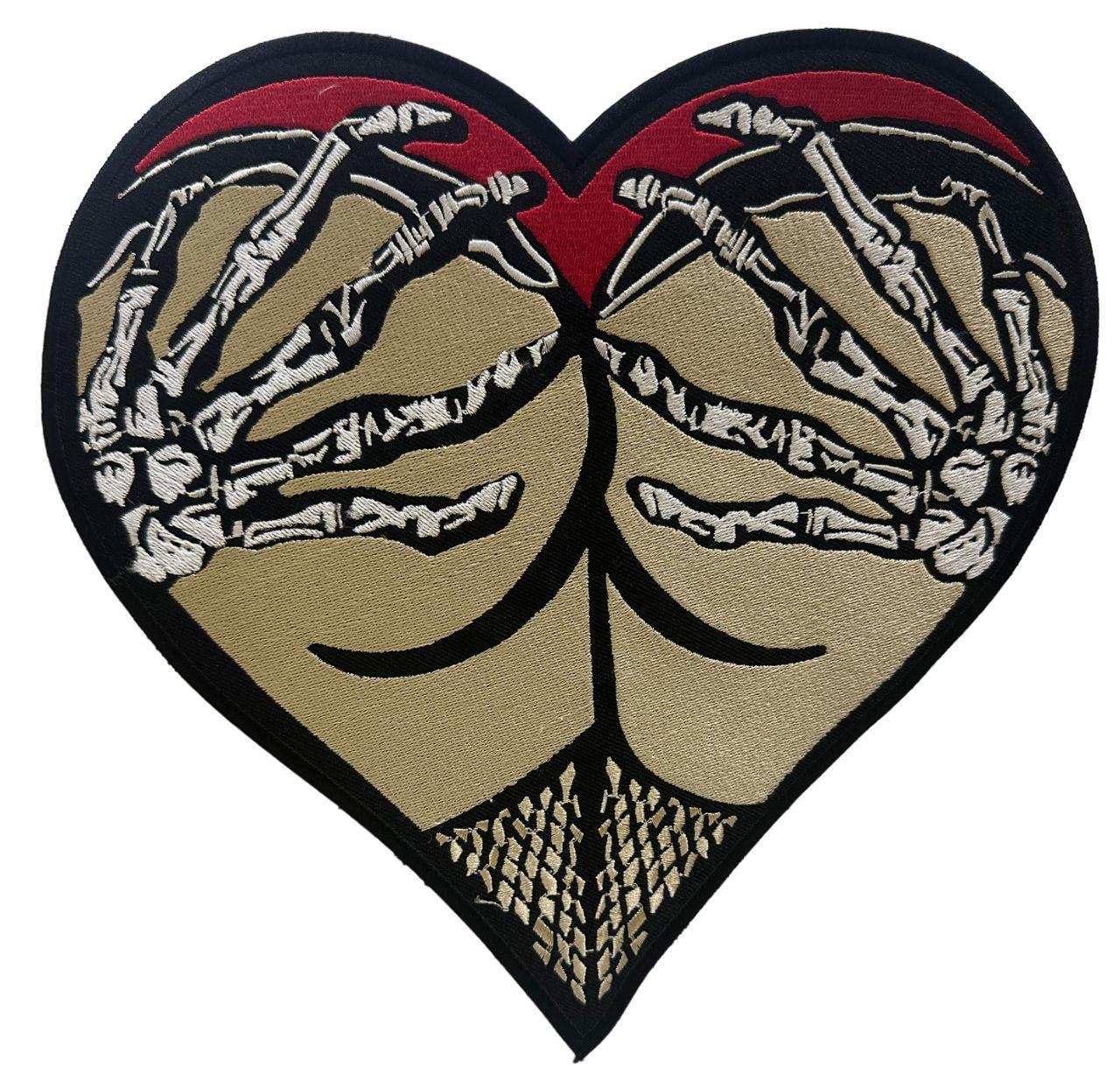 WCEP15 HEART WITH SKULL HANDS MOTORCYCLE PATCH EMBROIDERY IRON ON PATCH