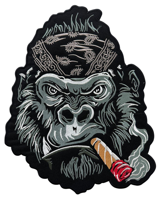 Show off your style with this high-quality Angry Gorilla biker embroidery patch, perfect for customizing jackets, vests, backpacks, and more. Crafted with vibrant threadwork and a durable fabric base, this patch features an angry gorilla having cigarette in black and white color. Apply it easily using an iron-on backing/sew-on or both, and instantly upgrade your gear with personality.
