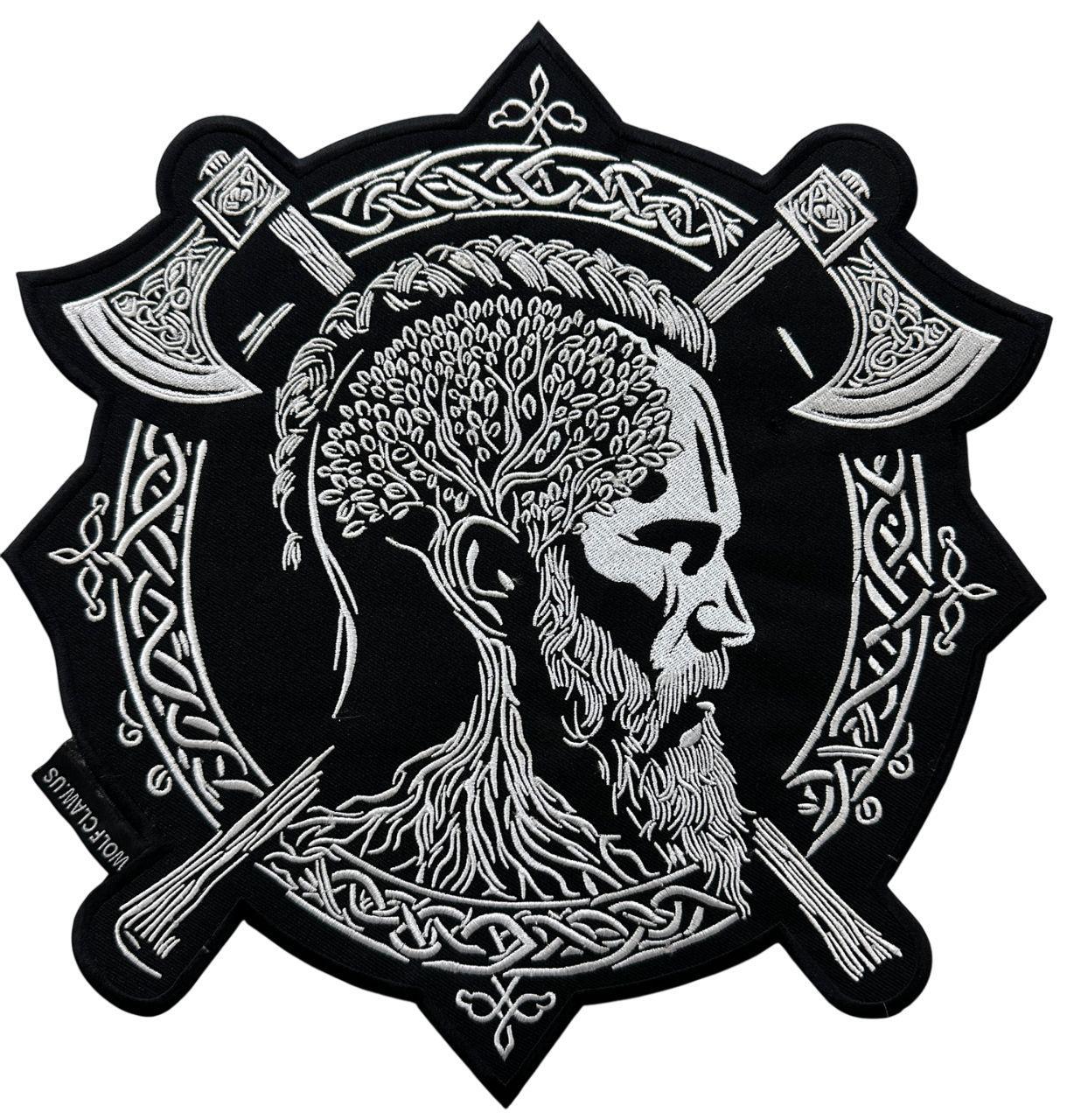 WCEP173 ODIN VIKING, VALHALLA EMBROIDERY PATCH SEW ON VALHALLA PATCH, CROSS VIKING EMBROIDERY PATCH IRON ON ( WHITE ON BLACK