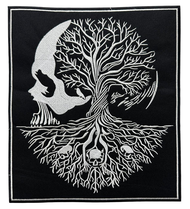 WCEP179 SKULL TREE VALHALLA EMBROIDERY PATCH, TREE OF DEATH EMBROIDERY PATCH, SKULL SEW ON PATCH, SKULL IRON ON PATCH, ODIN PATCH, VIKING PATCH