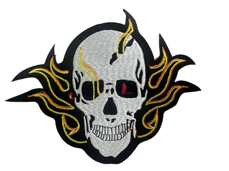 WCEP10 SKULL WITH FLAMES LARGE MOTORCYCLE EMBROIDERY PATCH IRON ON PATCH