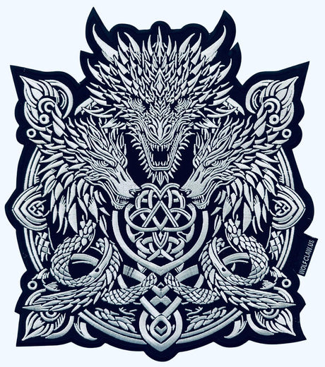 WCEP53 3DRAGONS ( WHITE & BLACK ) DESIGN DESIGN MOTORCYCLE PATCH EMBROIDERY IRON ON PATCH