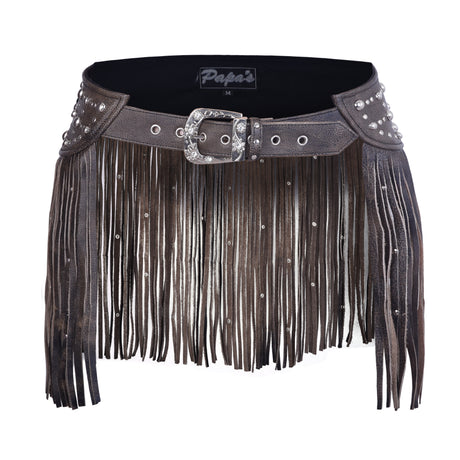Women Distressed Brown Tassel Leather Hip Belt