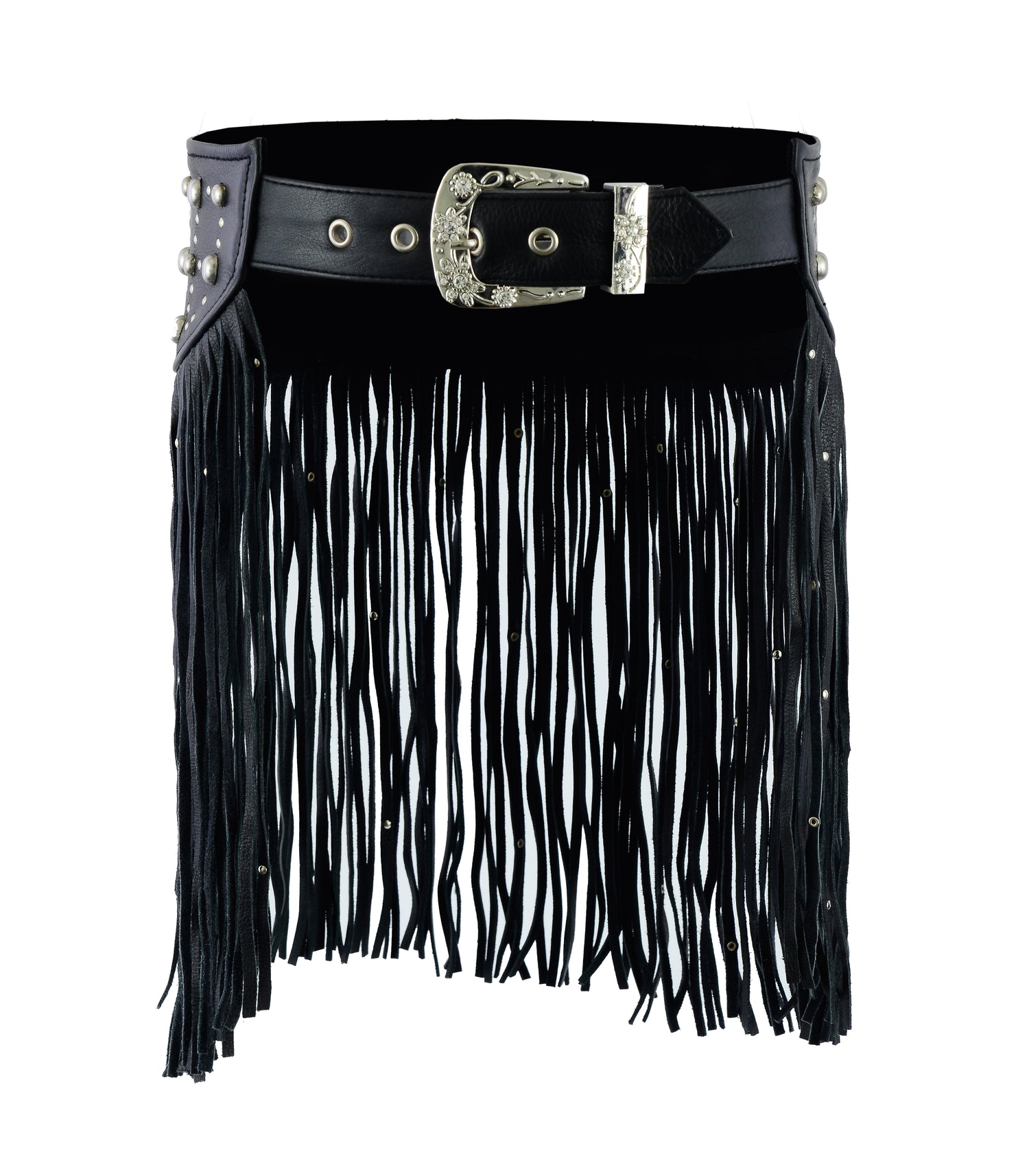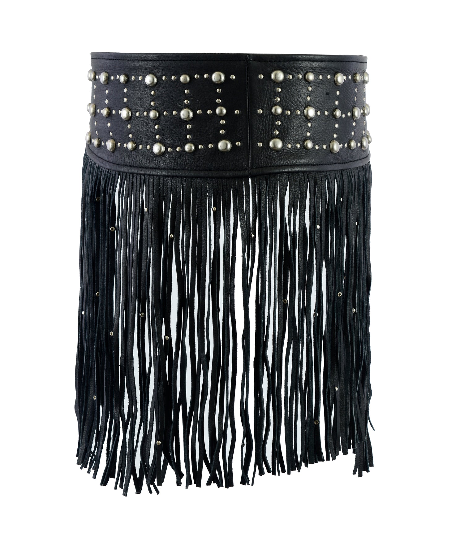 Women Black Tassel Studded Leather Hip Belt - XS is backordered and will ship as soon as it is back in stock.