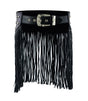 Women Black Tassel Studded Leather Hip Belt