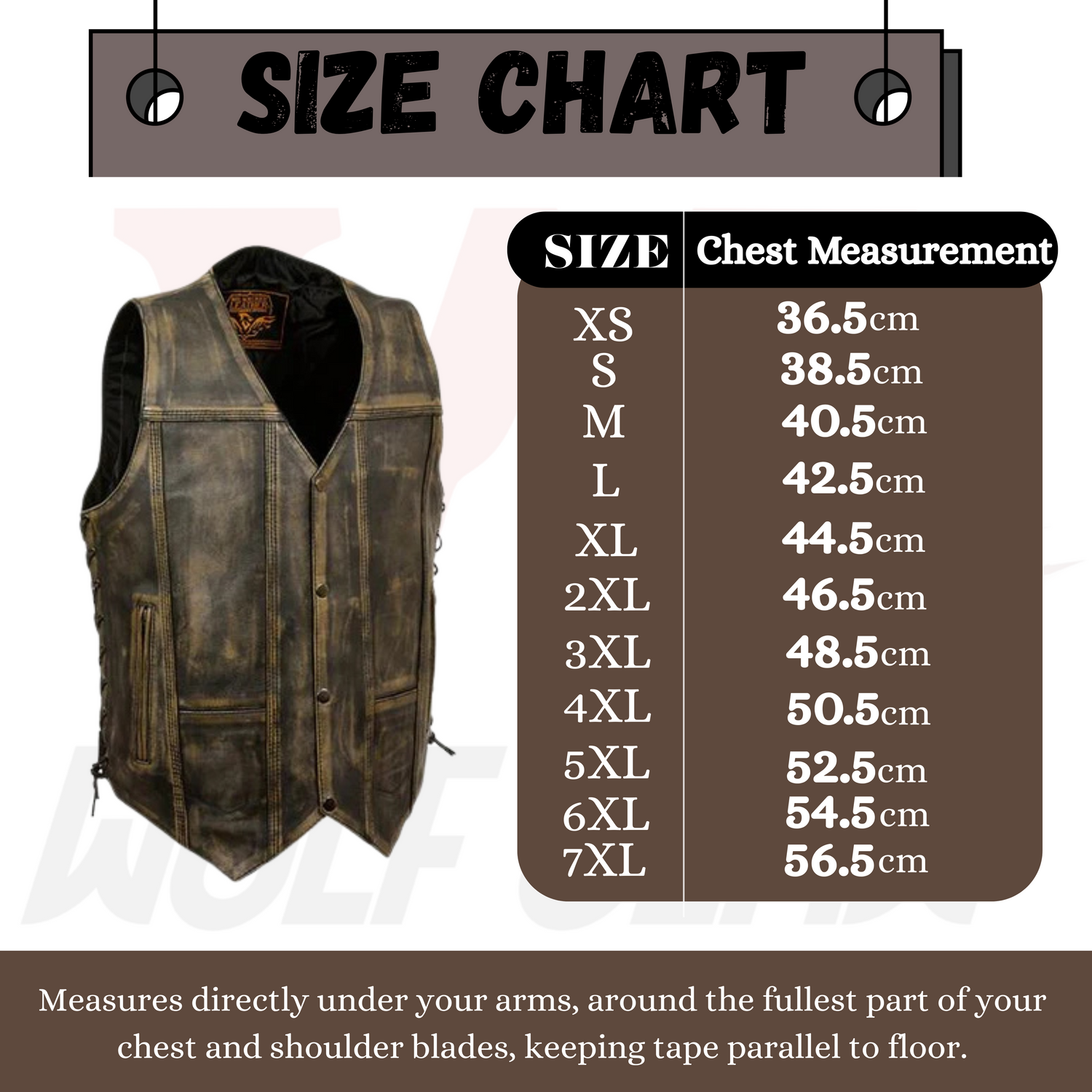 Men's Roulette Distressed Brown 7 Pocket Motorcycle Leather Vest