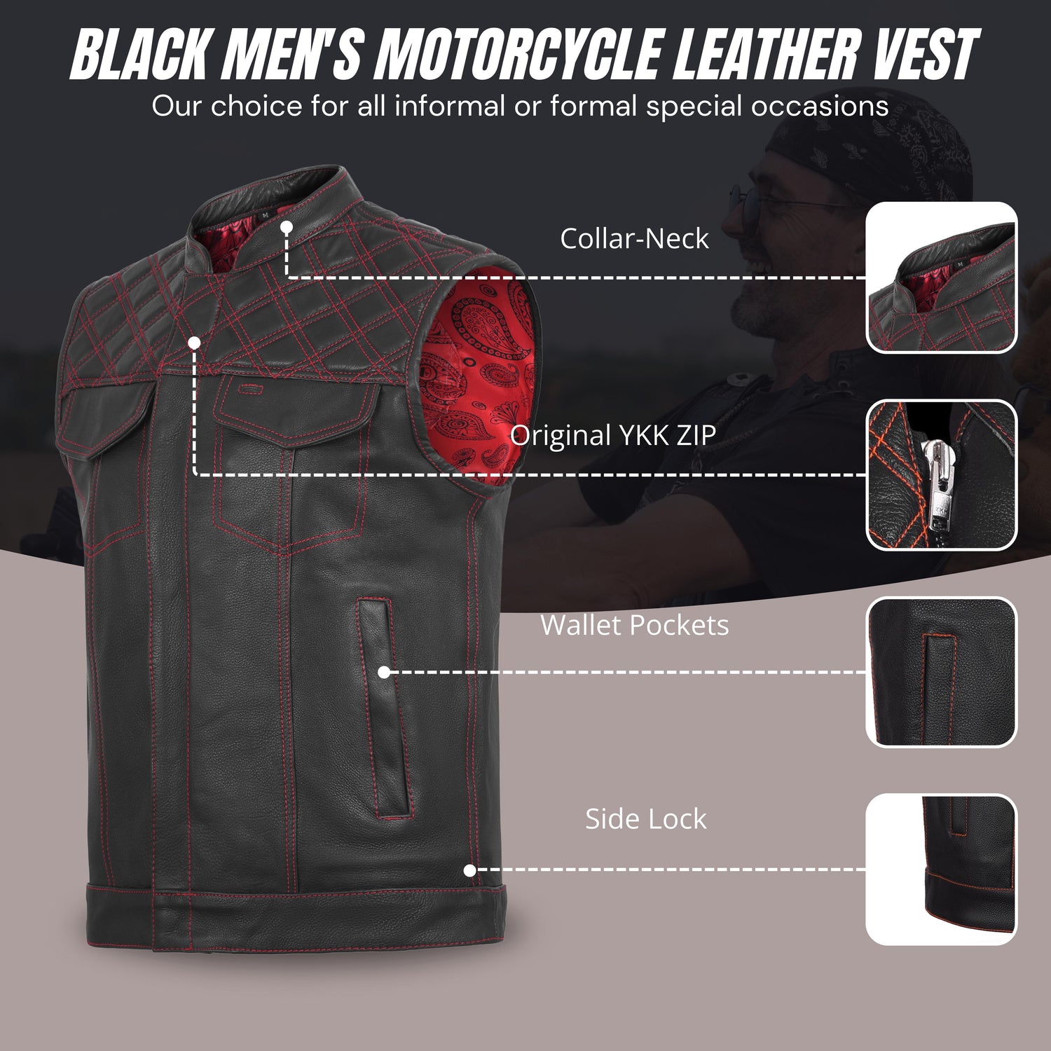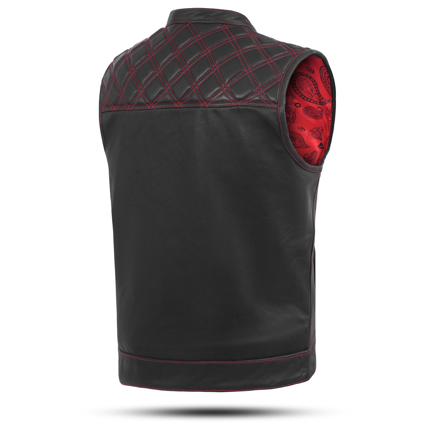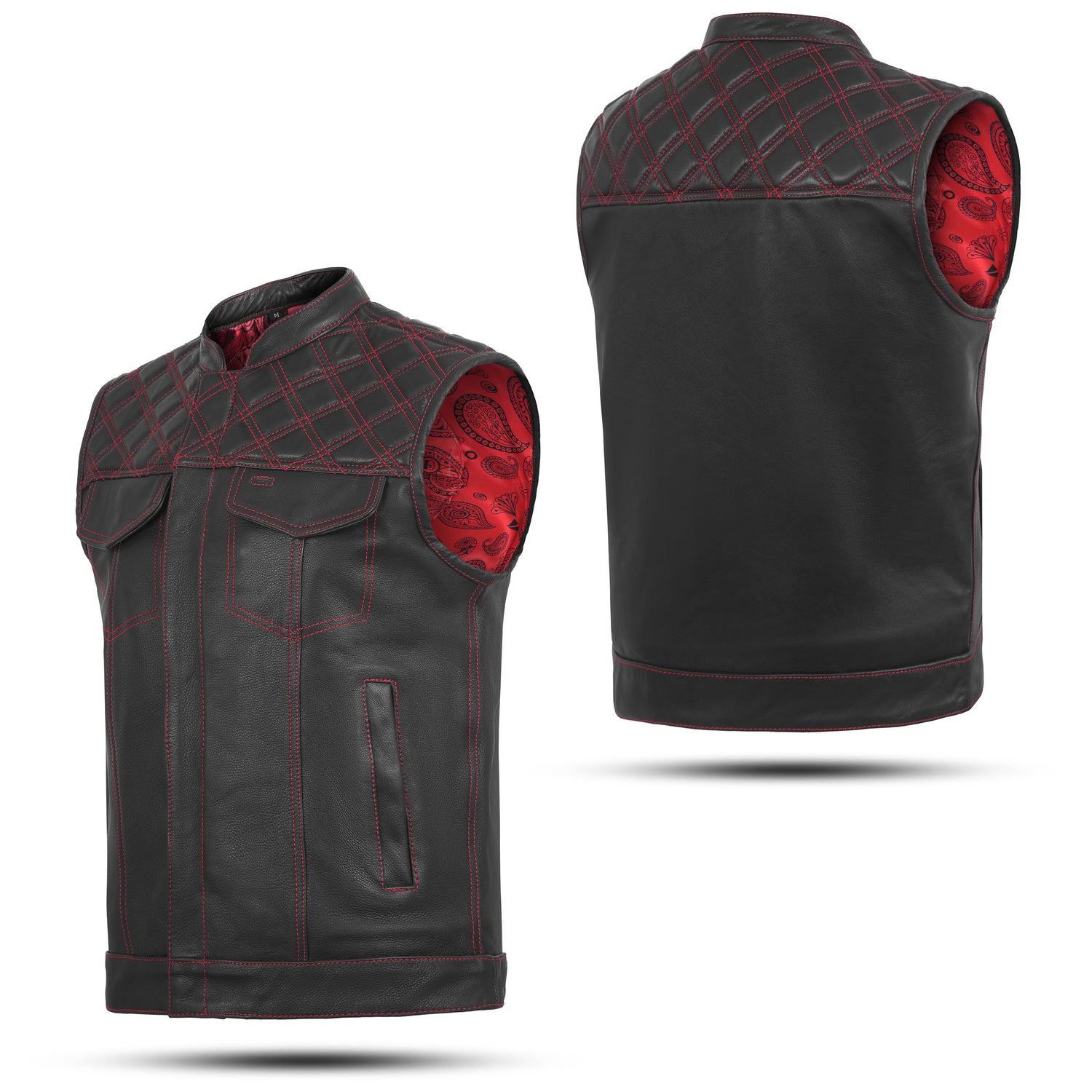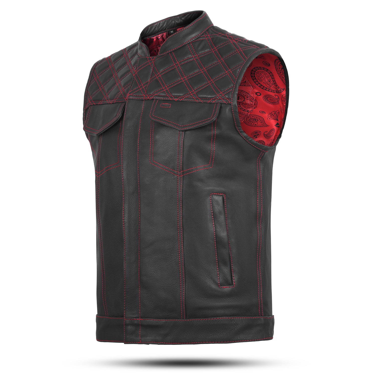 Men's Red Cross Stitch Club Style Cow Platted Milled Leather Vest.
