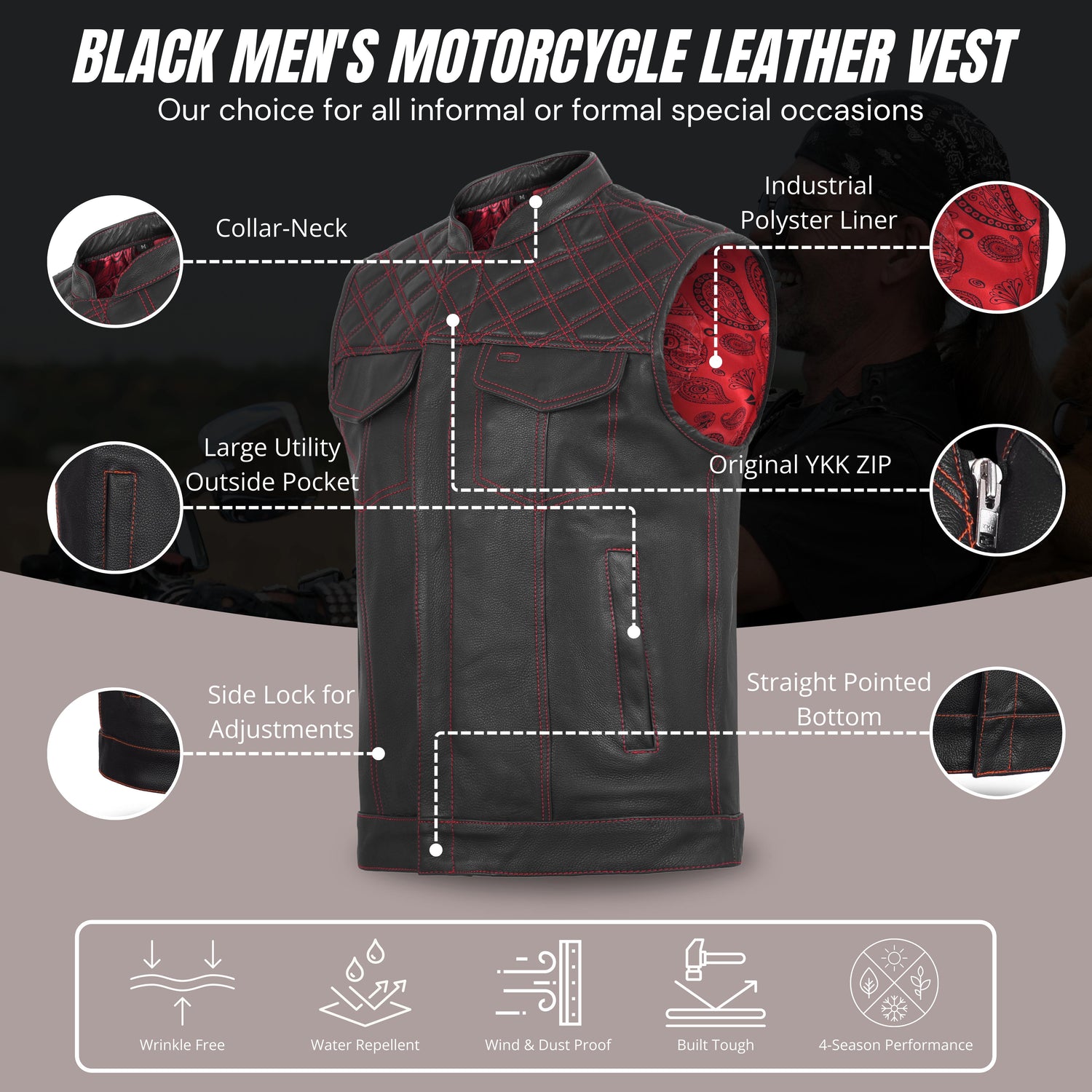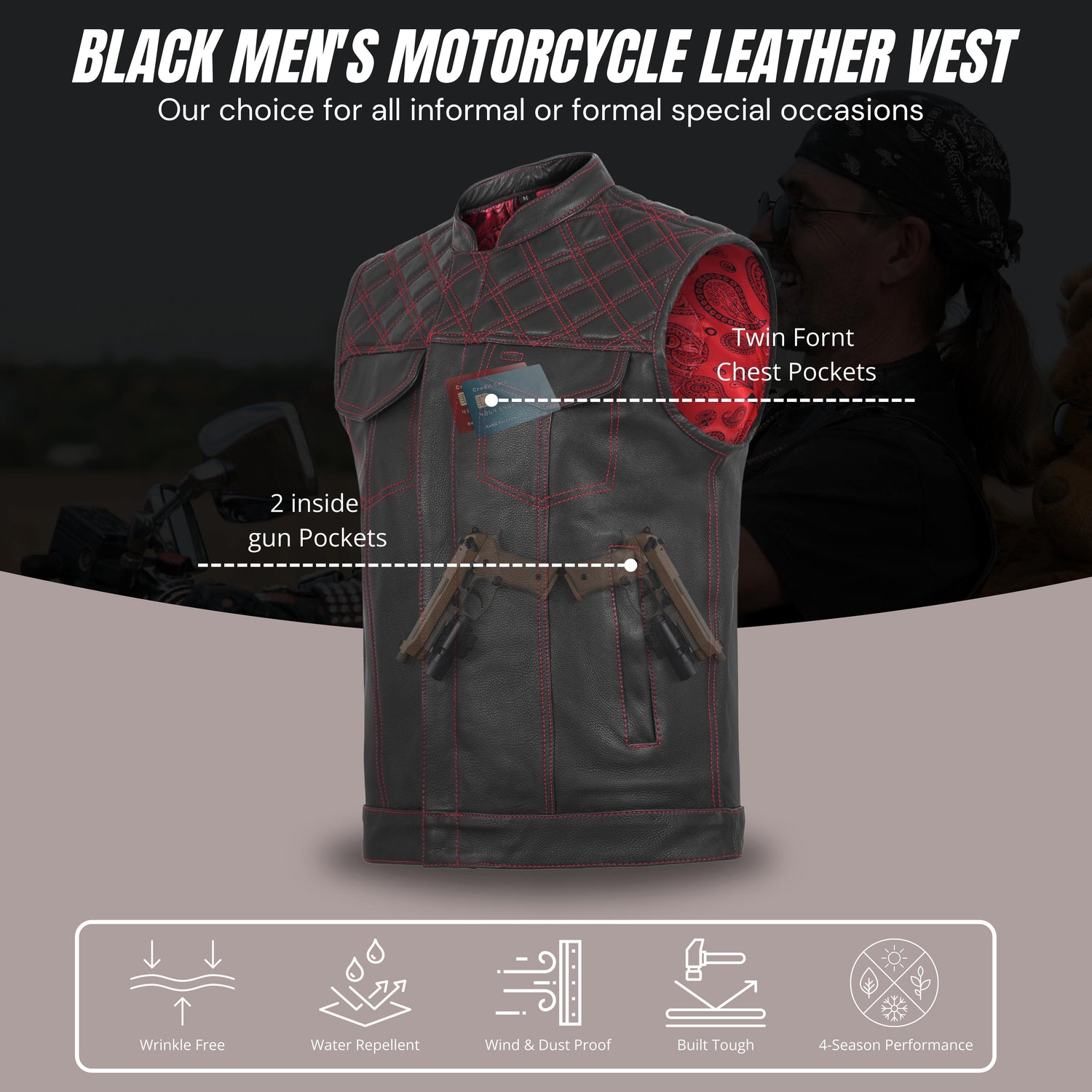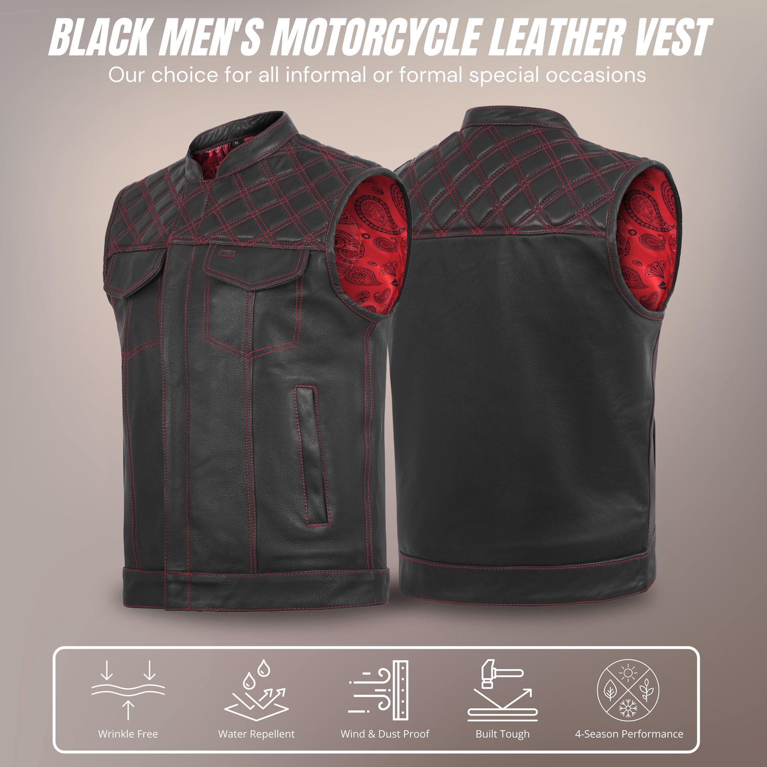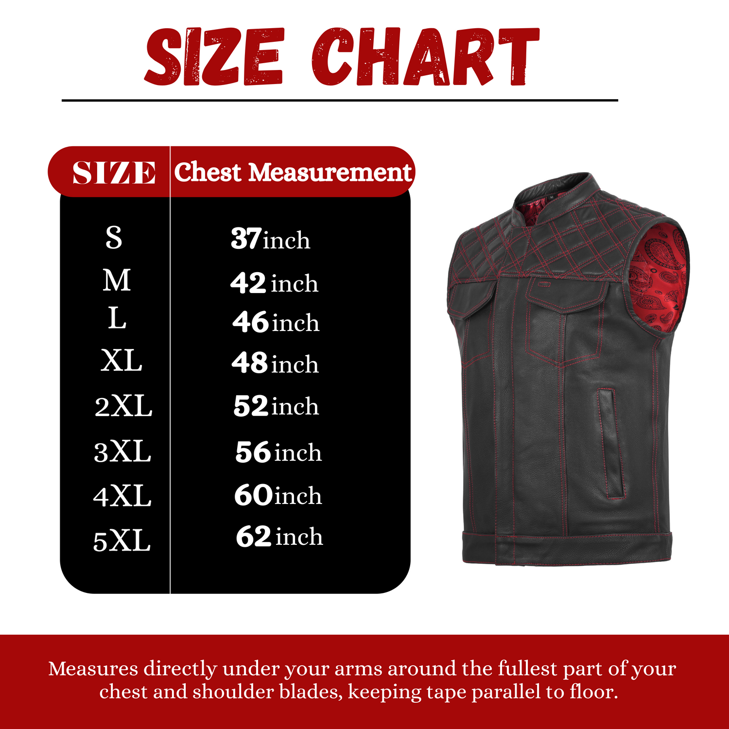 Men's Red Cross Stitch Club Style Cow Platted Milled Leather Vest.