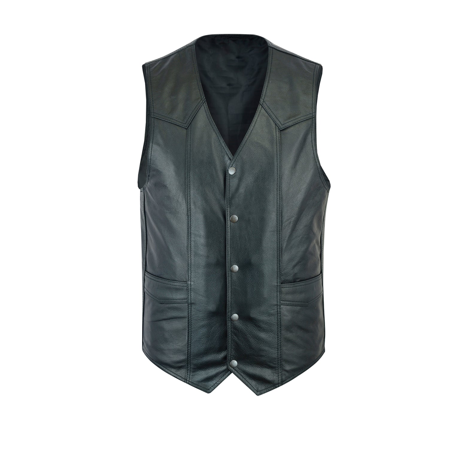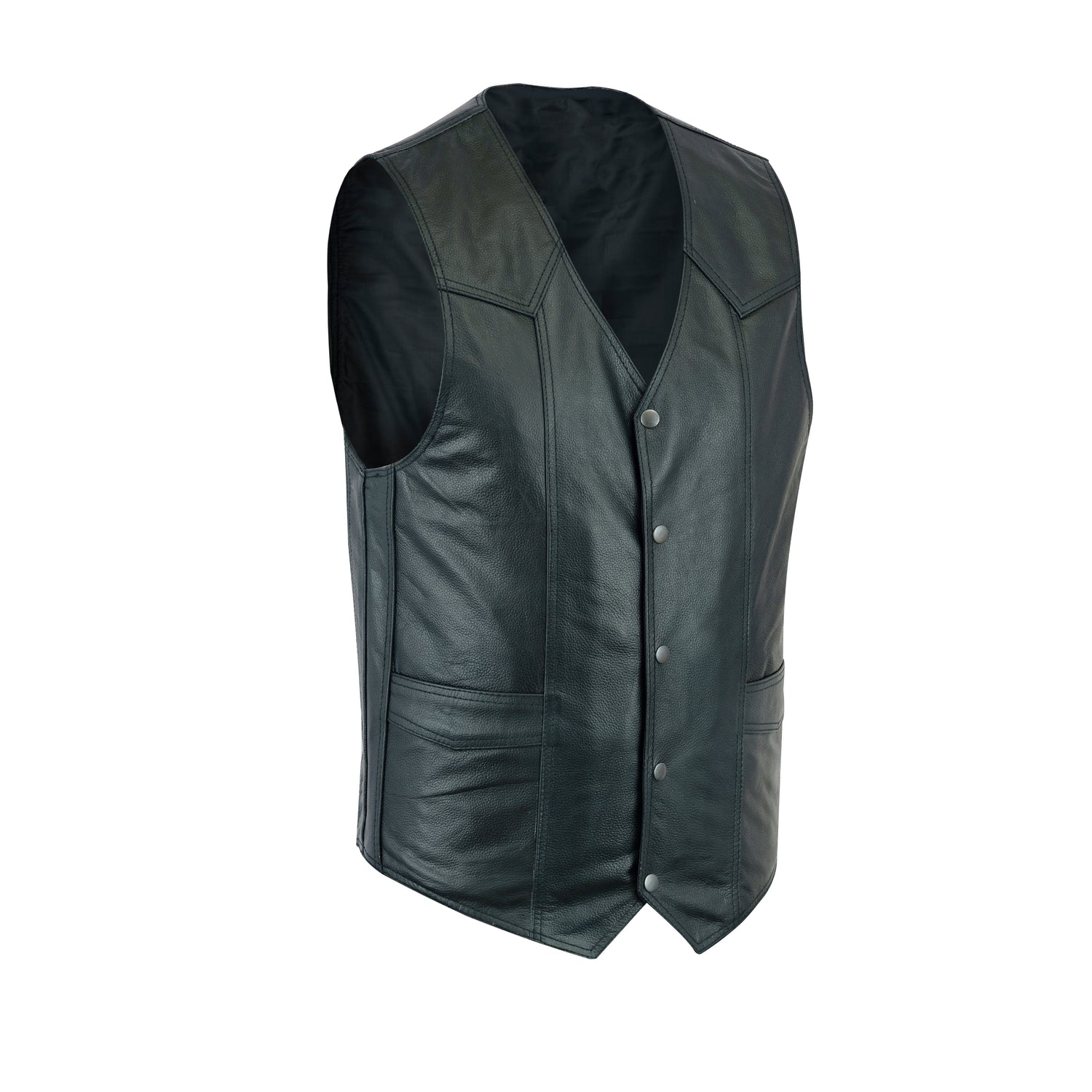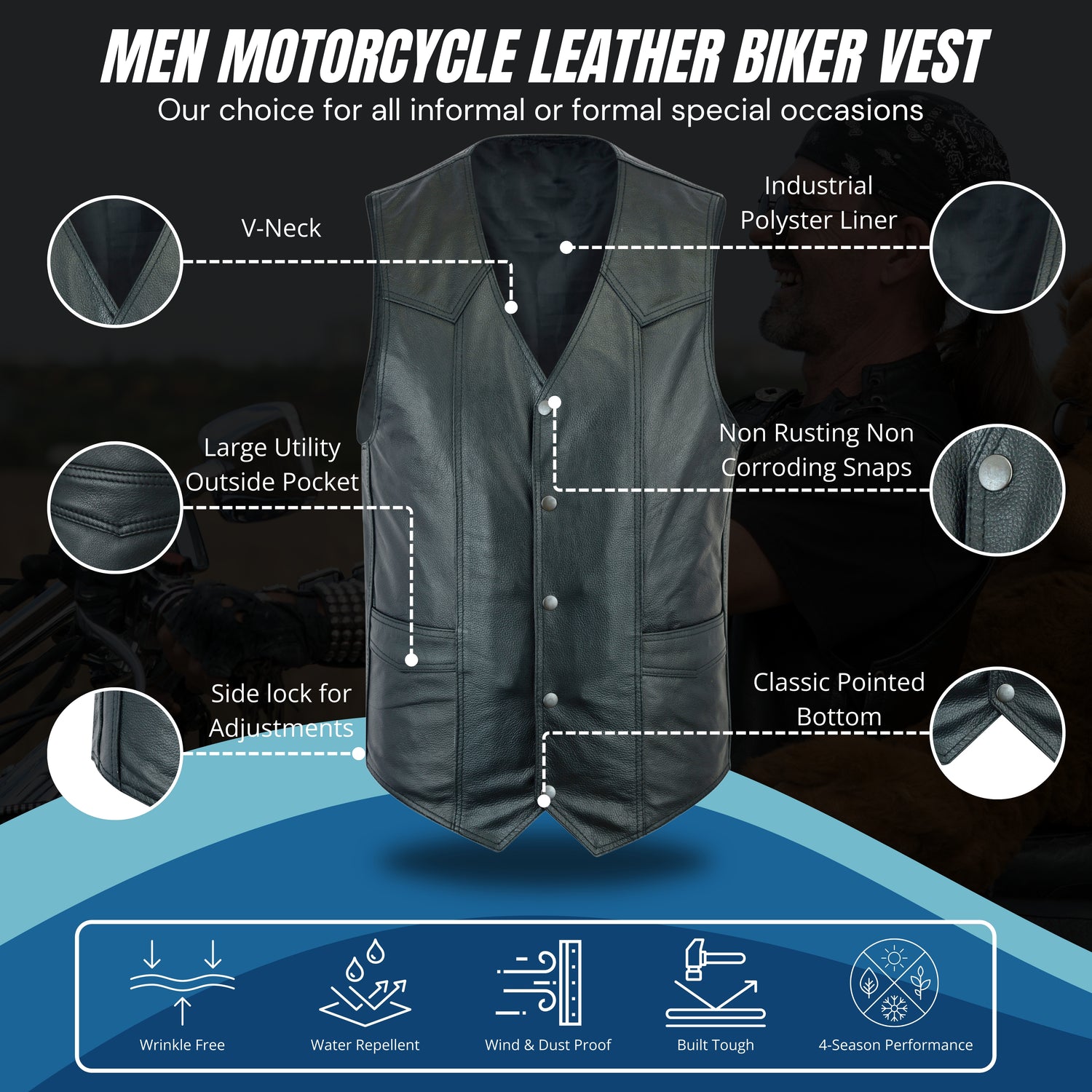 Men's Motorcycle Leather Vest - The Classic Plain Biker Vest