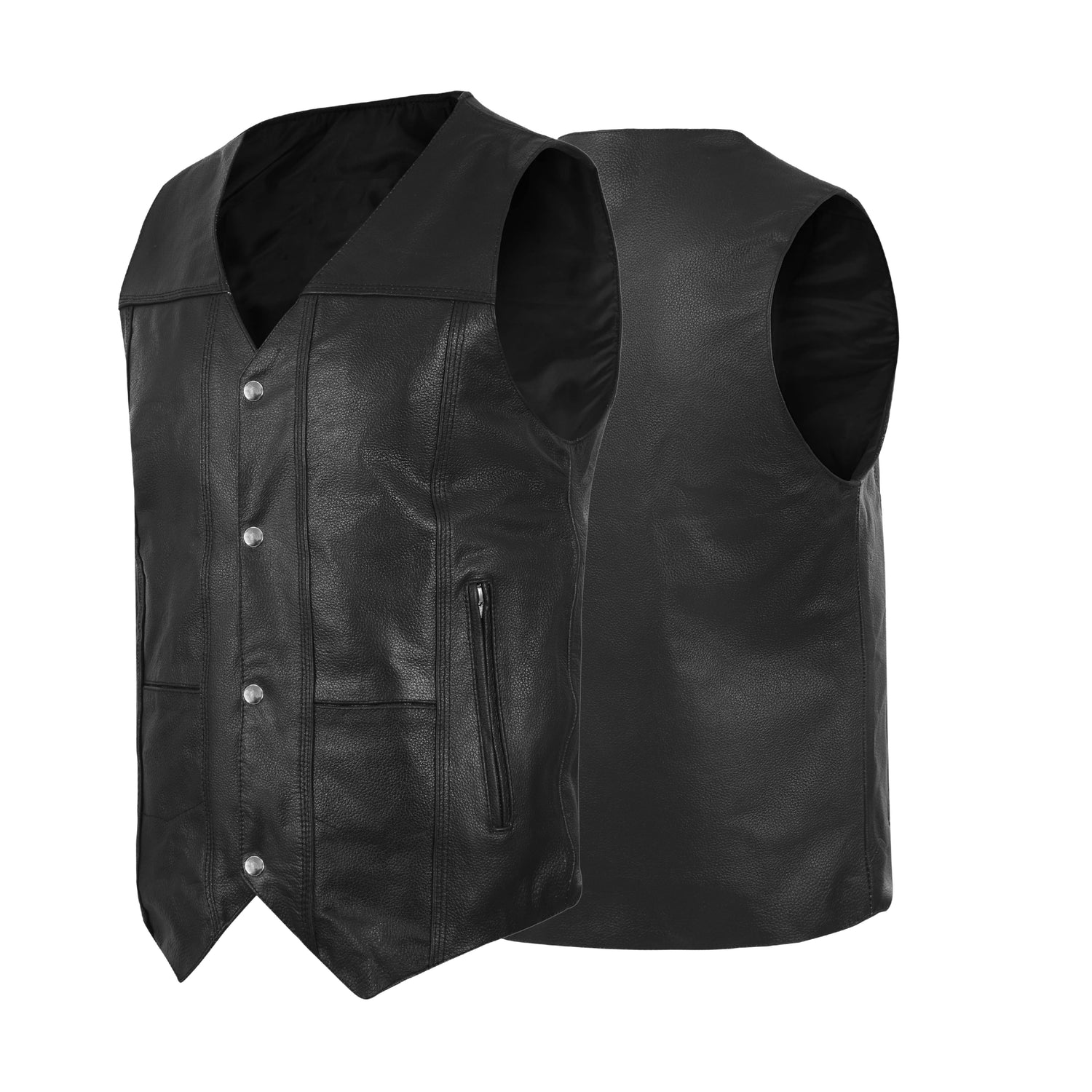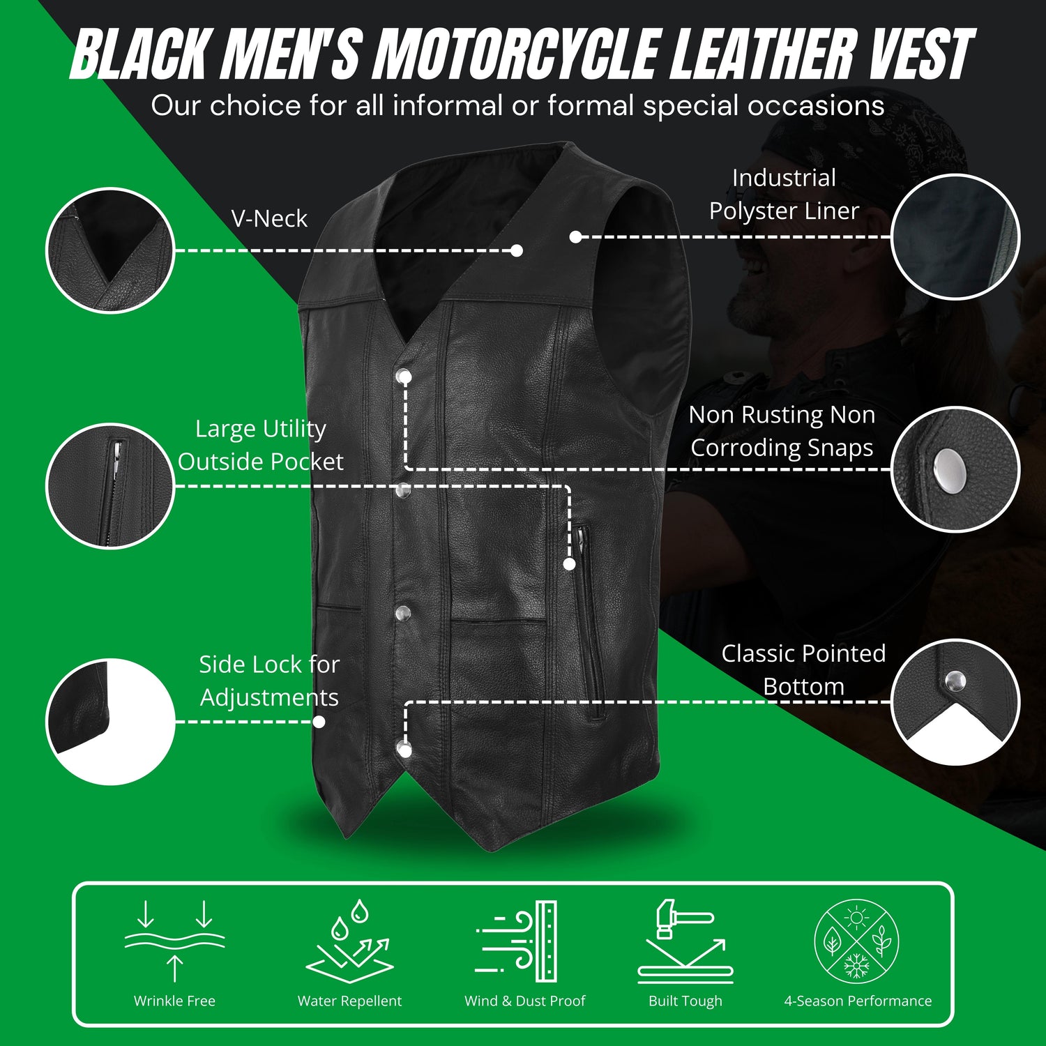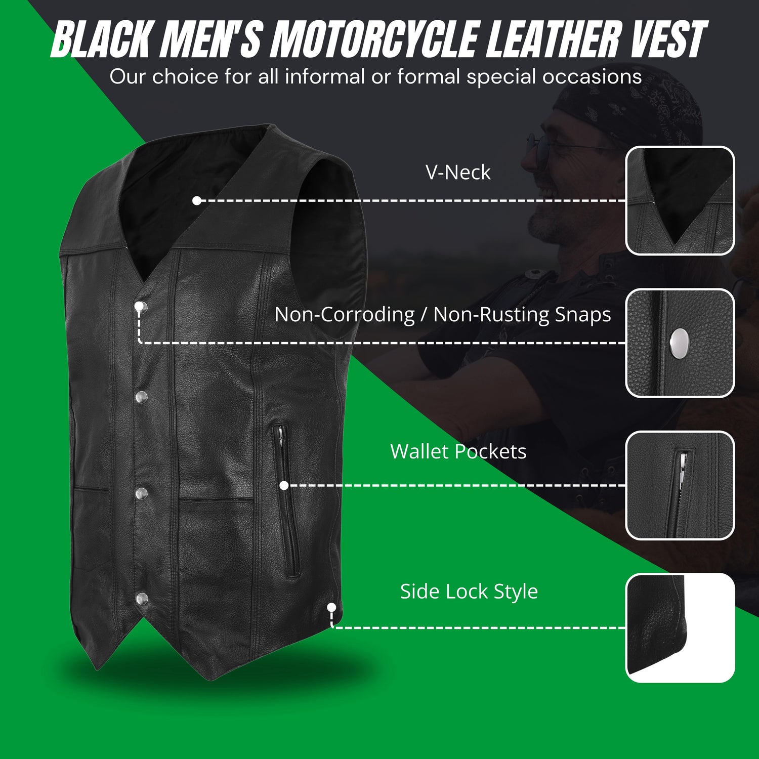 Men's Black Leather Classic V-Neck Motorcycle Rider Vest