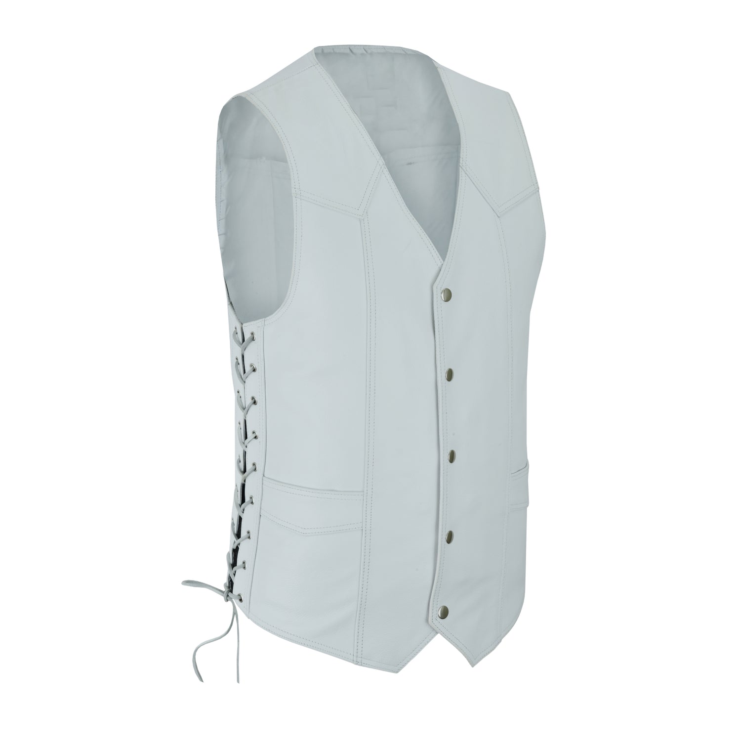 Men's White Side Lace Leather Traditional style Vest. - XS is backordered and will ship as soon as it is back in stock.