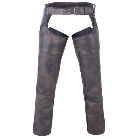 · Adjustable Fit: Motorcycle Leather chaps have an adjustable waist belt, back lacing, and leg snap closures for a secure, customized fit over jeans or riding pants.