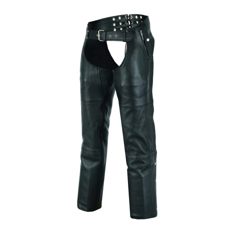 Classic Black Braided Style Leather Motorcycle Chap for Riding Easy Fit