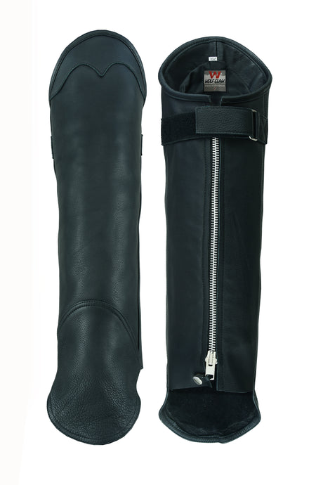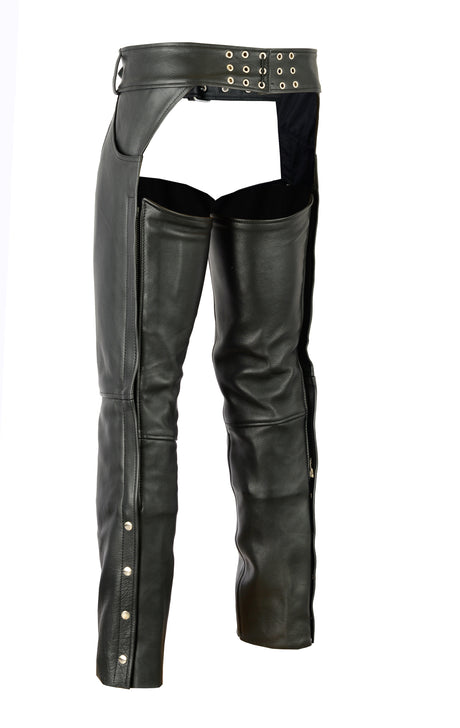 Basic Classic Style Leather Motorcycle Chap for Motorcycle Riding Plain Easy Fit Black