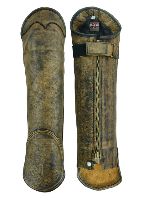 Heavy Buffalo Leather Lined Chaps 4 pocket chap Distressed Brown