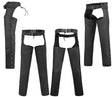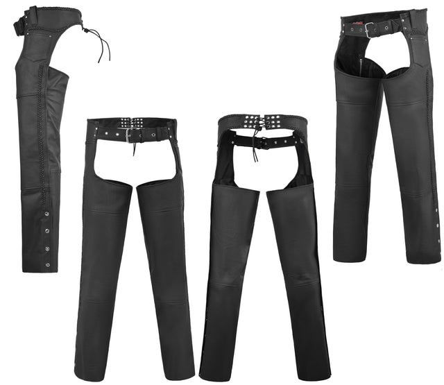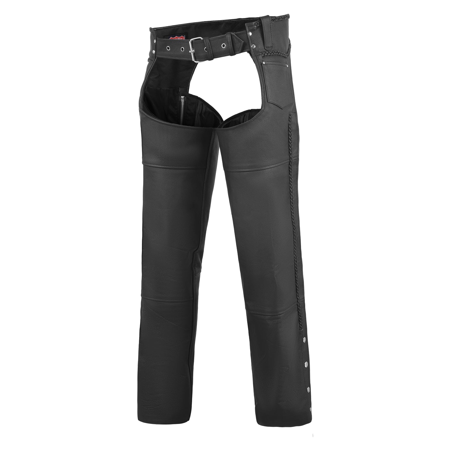 Classic Black Braided Style Leather Motorcycle Chap for Riding Easy Fit