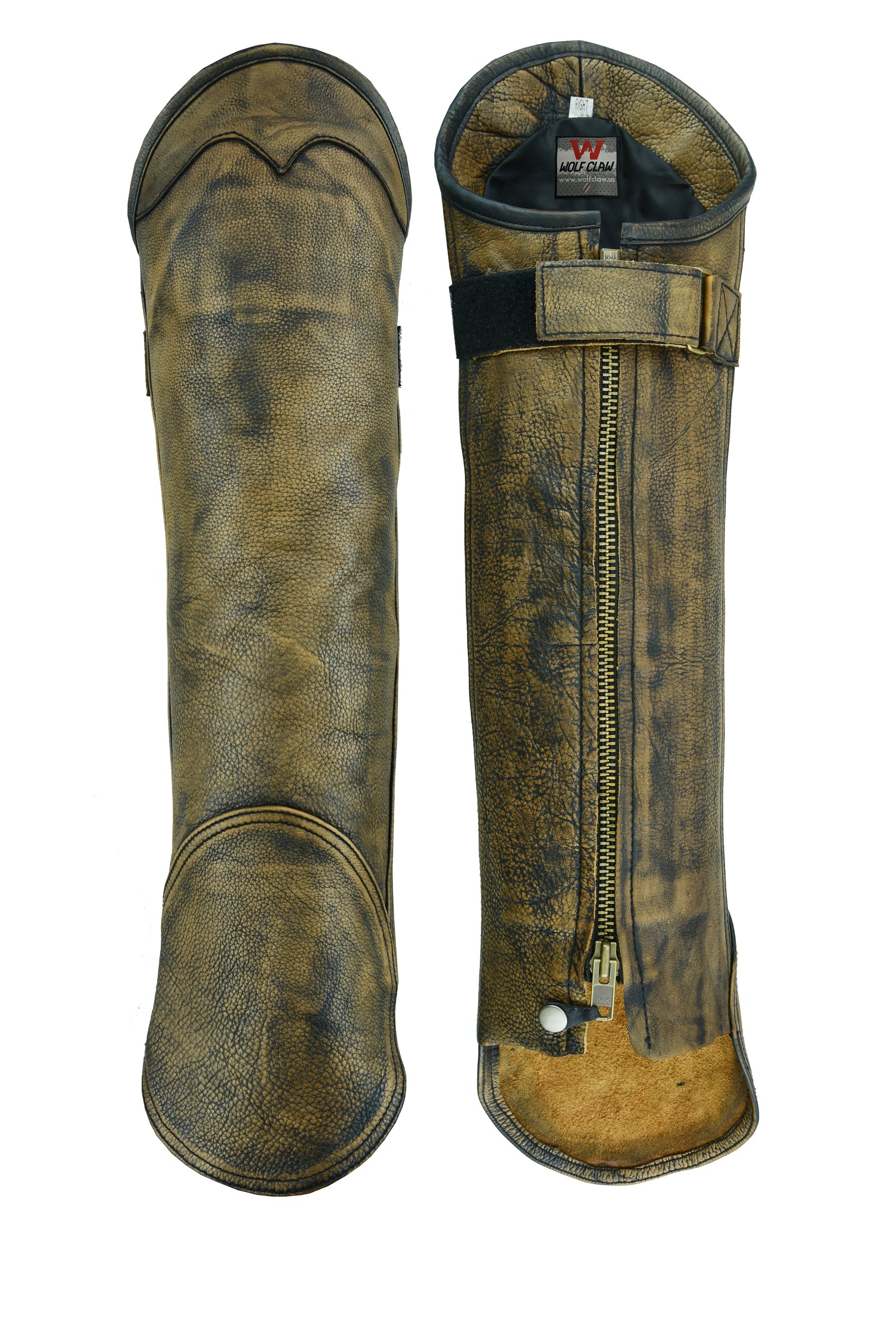 Gaiter chaps are a very small purchase that can help save your life in many instances. The heat production from the engine and exhaust pipe can burn your legs if you do not have the proper protection. Unisex Short Chap to protect your shins featuring zippered entry & Velcro strap. A new biker fashion or a practical bug guard for your pant legs as you ride. Either way this attractive western style and fashionable leather shin chap covers your knee to your ankle. Stays in place with a wide adjustable back straps