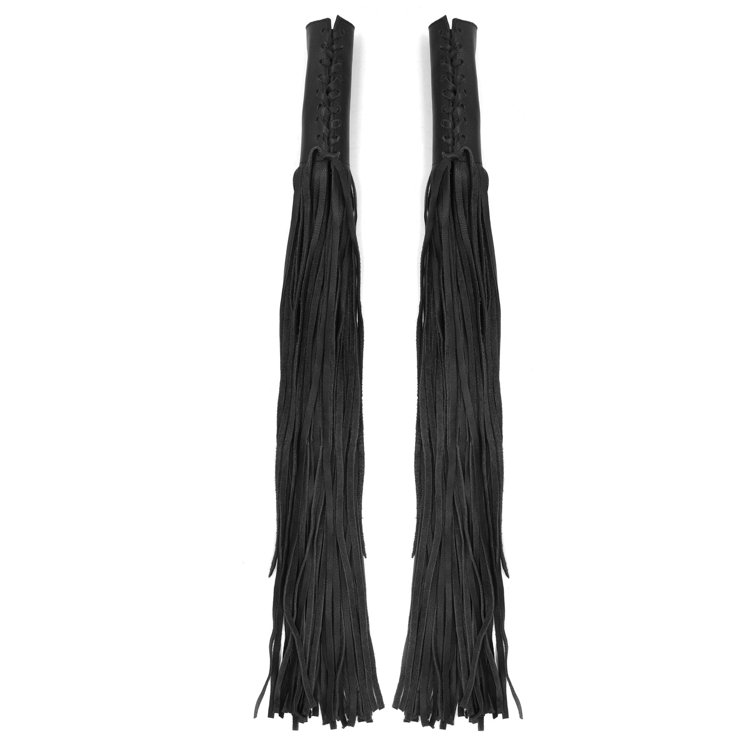 WCTC5205-Black Throttle Cover with Fringe Made of Leather