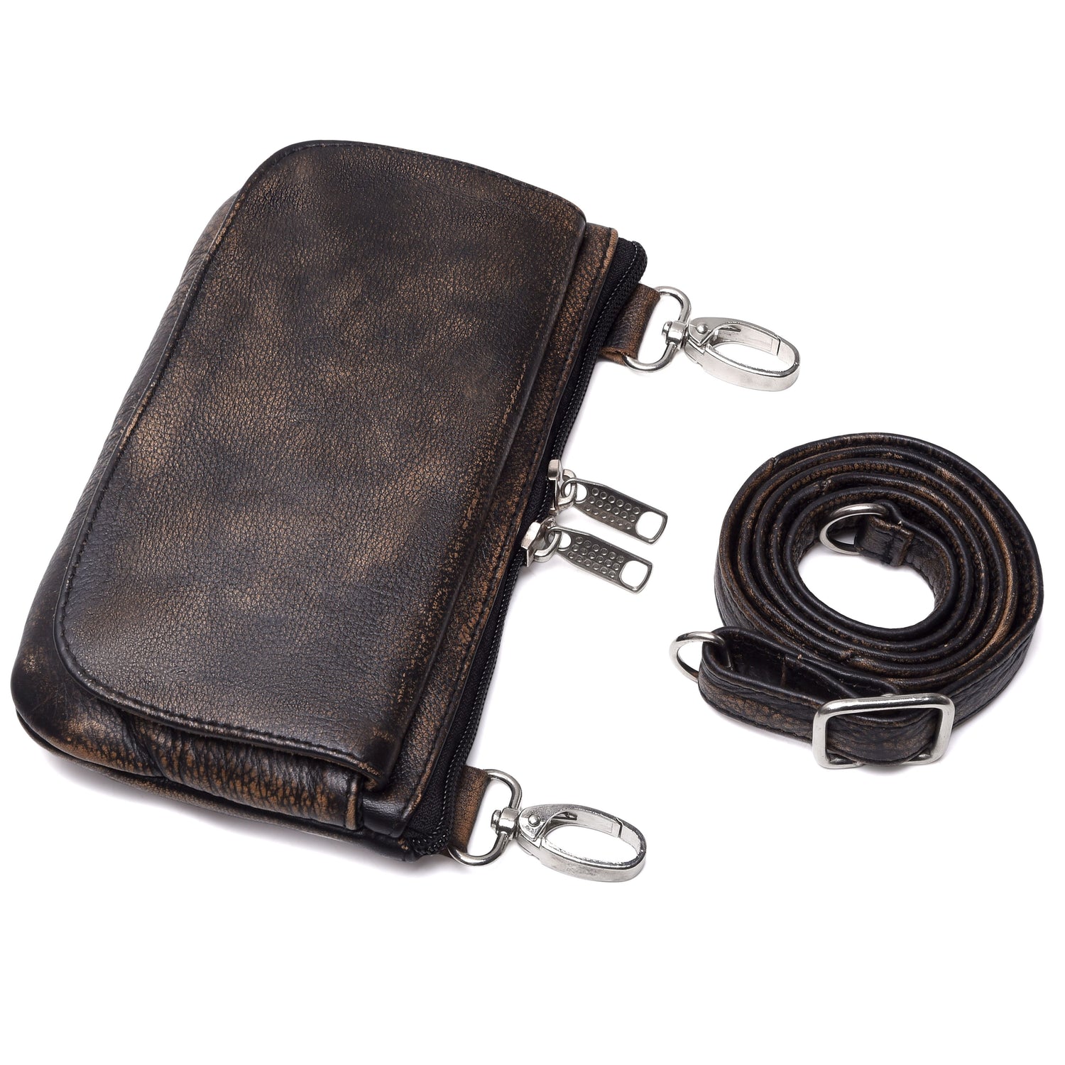 Distressed Brown Hip Clip Waist Leather Bag is backordered and will ship as soon as it is back in stock.