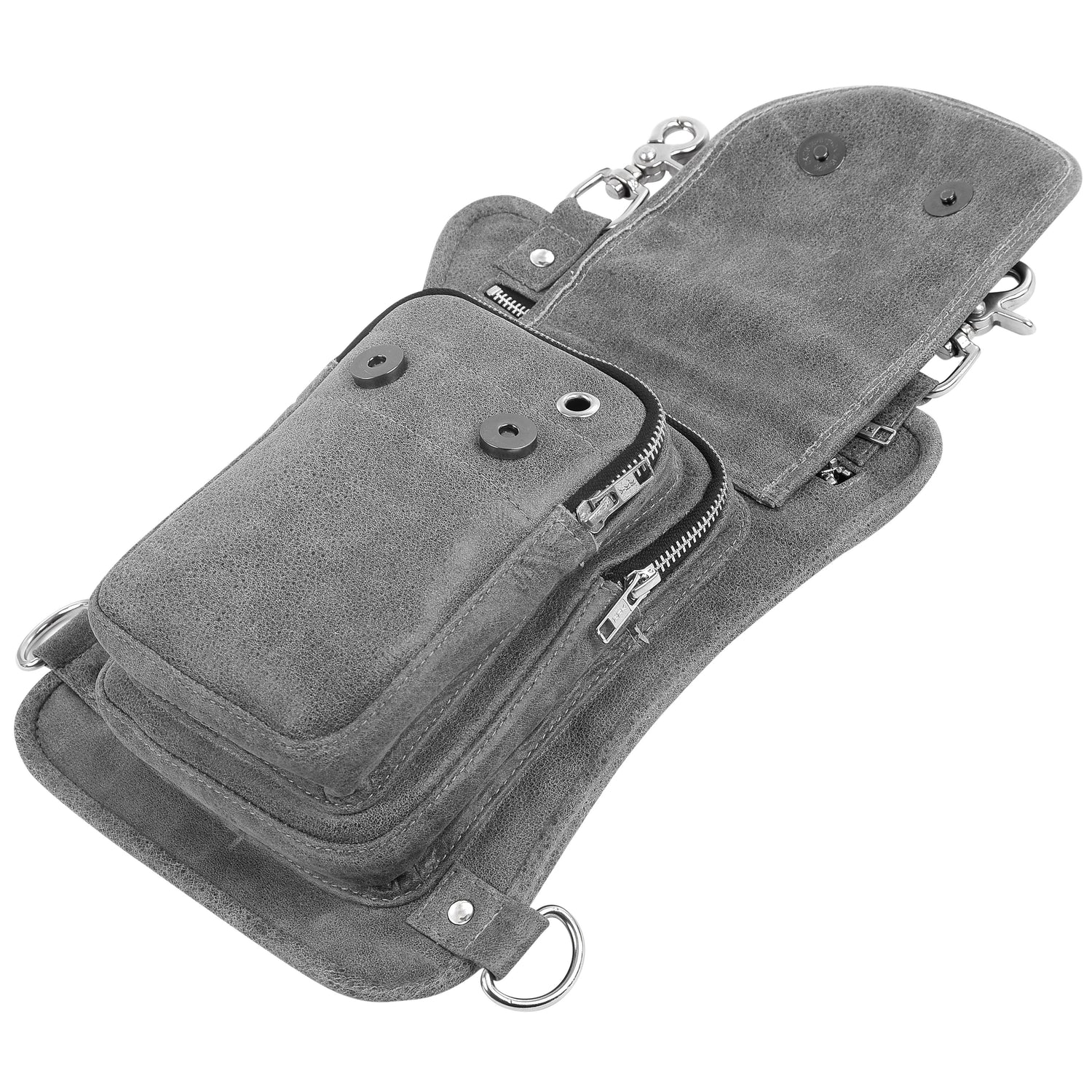 Grey Drop Leg Leather Thigh Bag